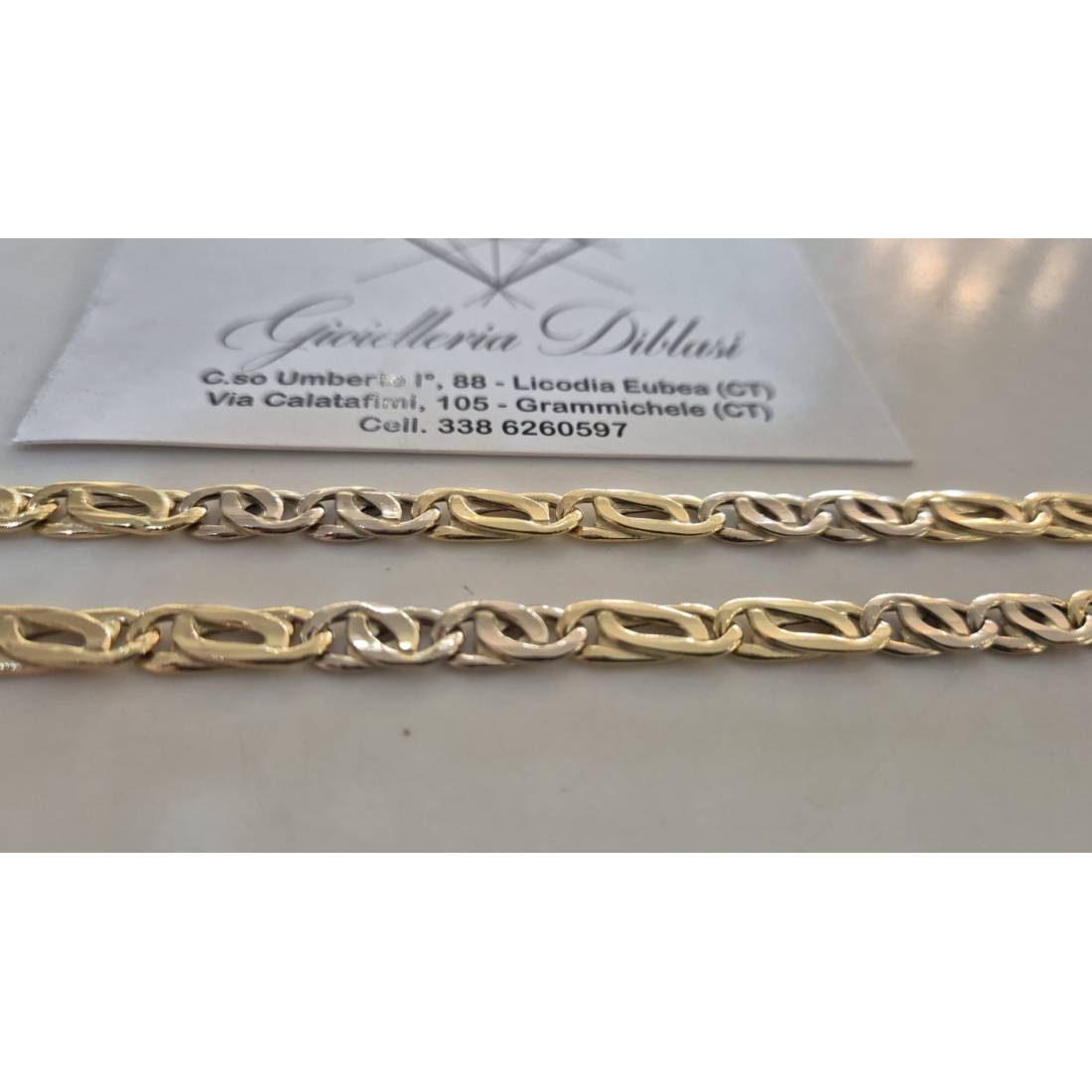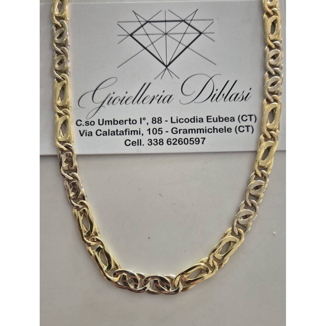 COLLANA Unisex ORO Bicolor GIALLO BIANCO 18 Karati 750% COLLIER Catena Girocollo