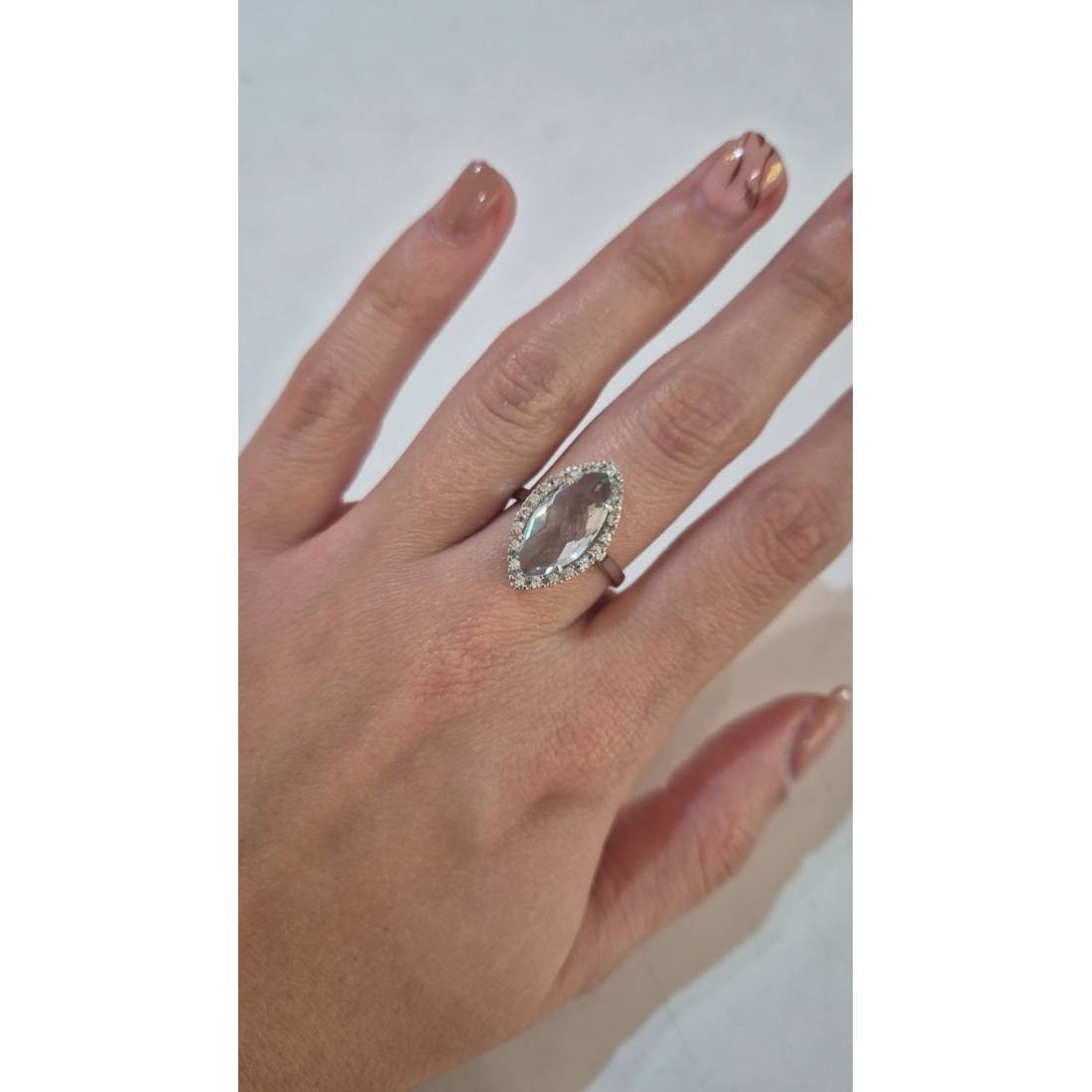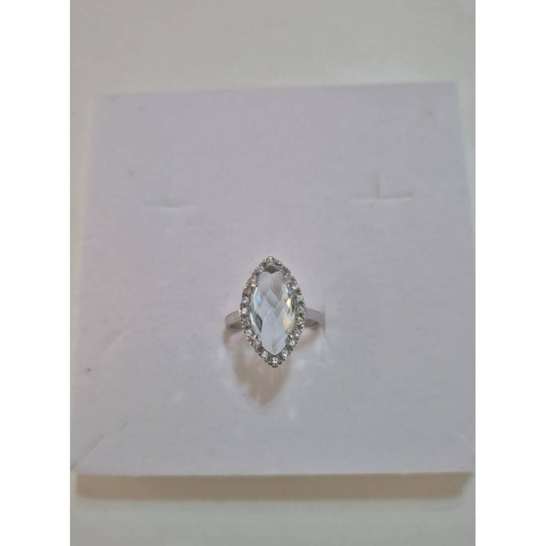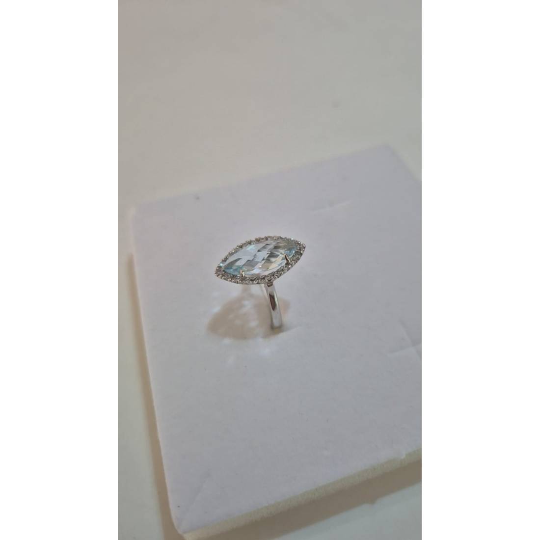 ANELLO Donna In ORO BIANCO 18 Karati 750% Con Zirconi Pietra Azzurra A Mandorla