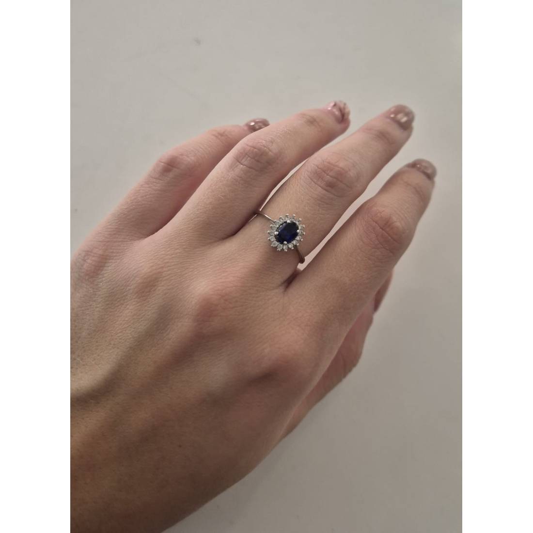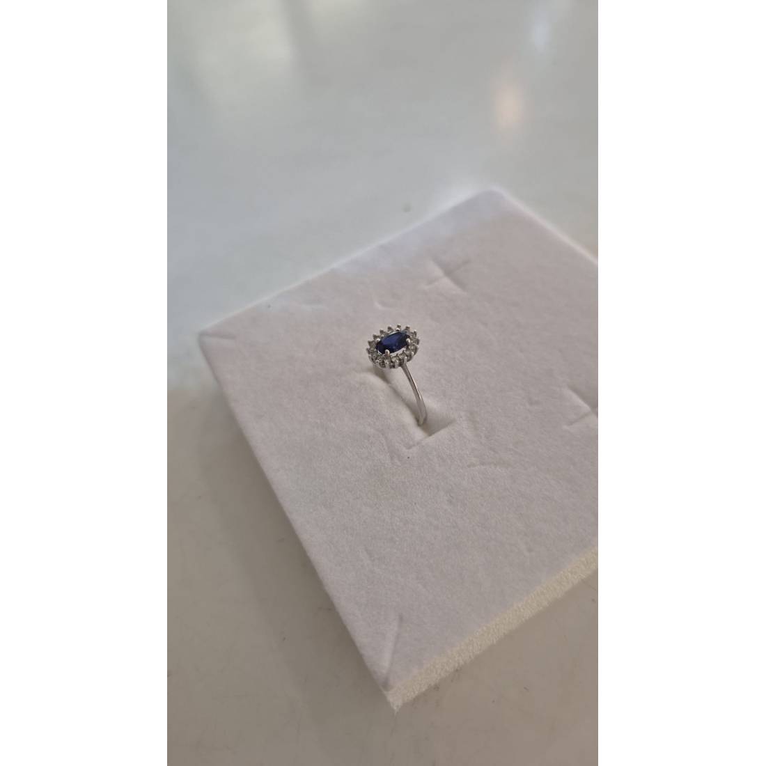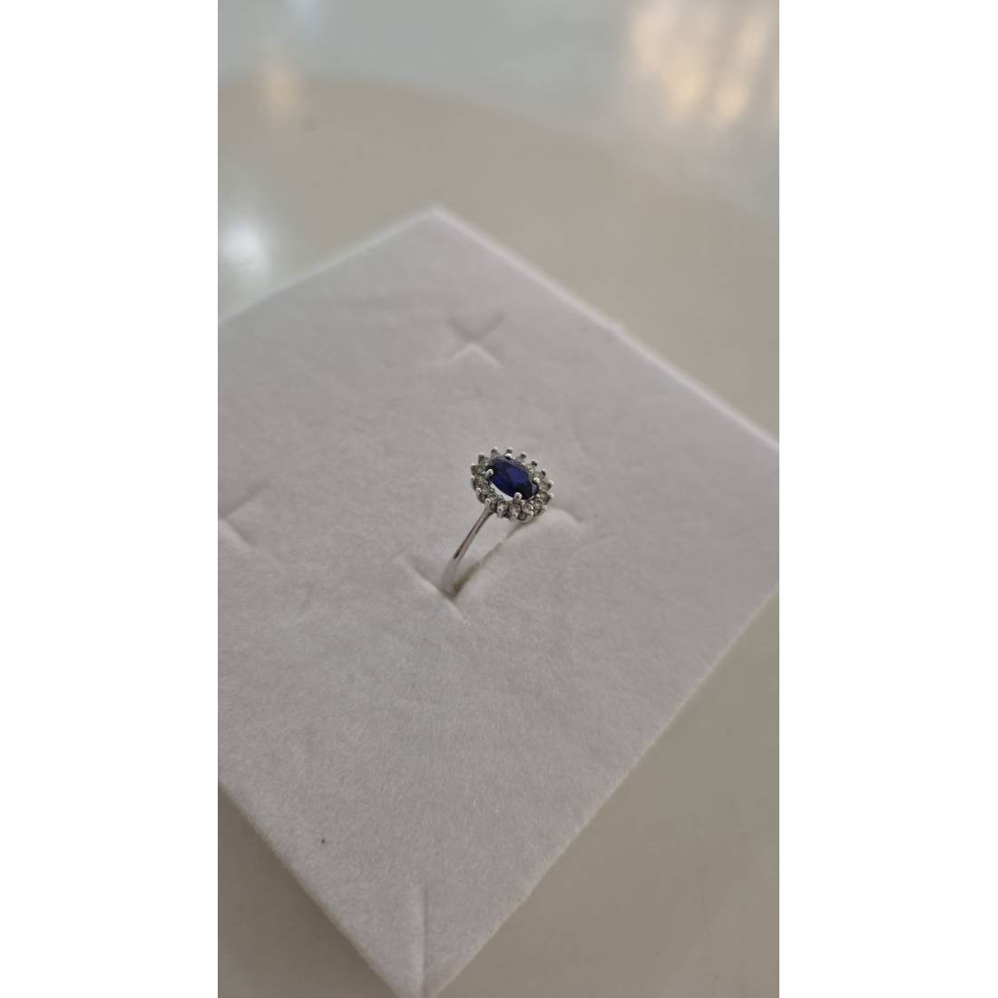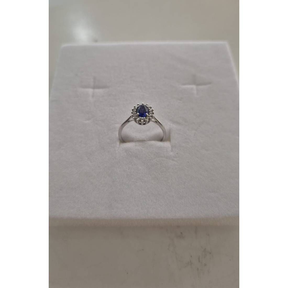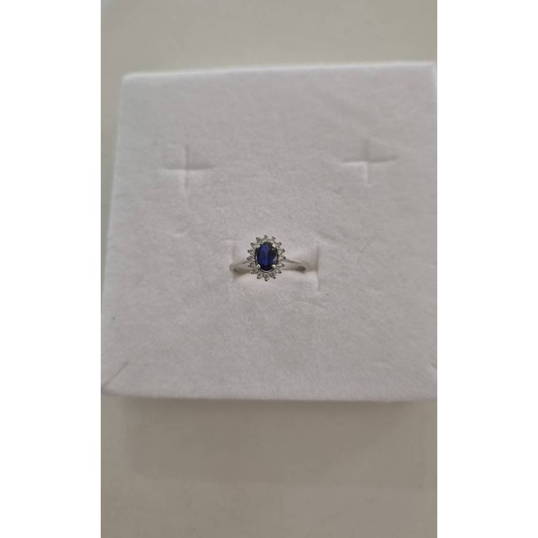 ANELLO Donna In ORO BIANCO 18 Karati 750% Con Zirconi Pietra Blu Ovale Centrale