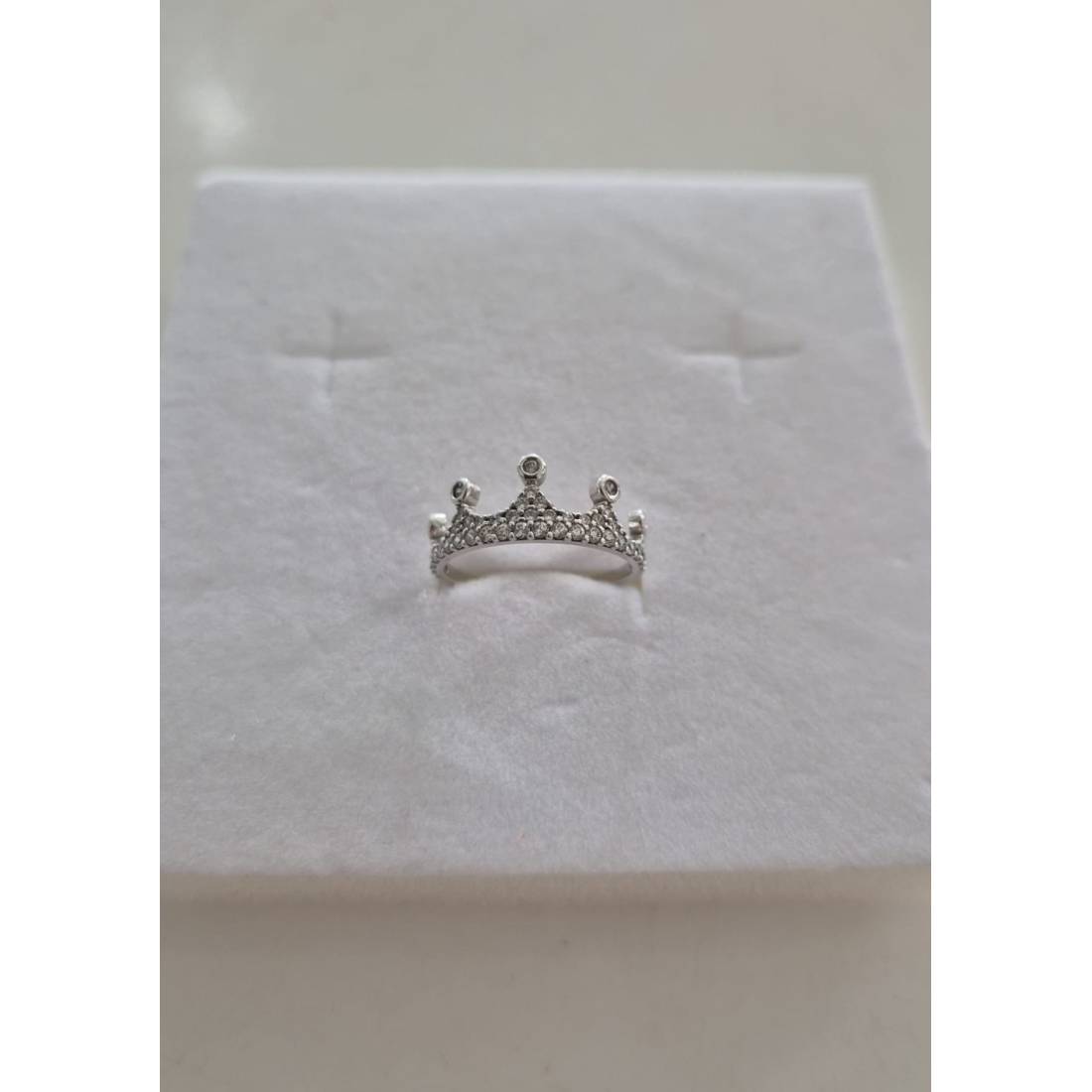 ANELLO Da Donna CORONA Pavè Zirconi Tondi Bianchi In ORO BIANCO 18 Karati 750%