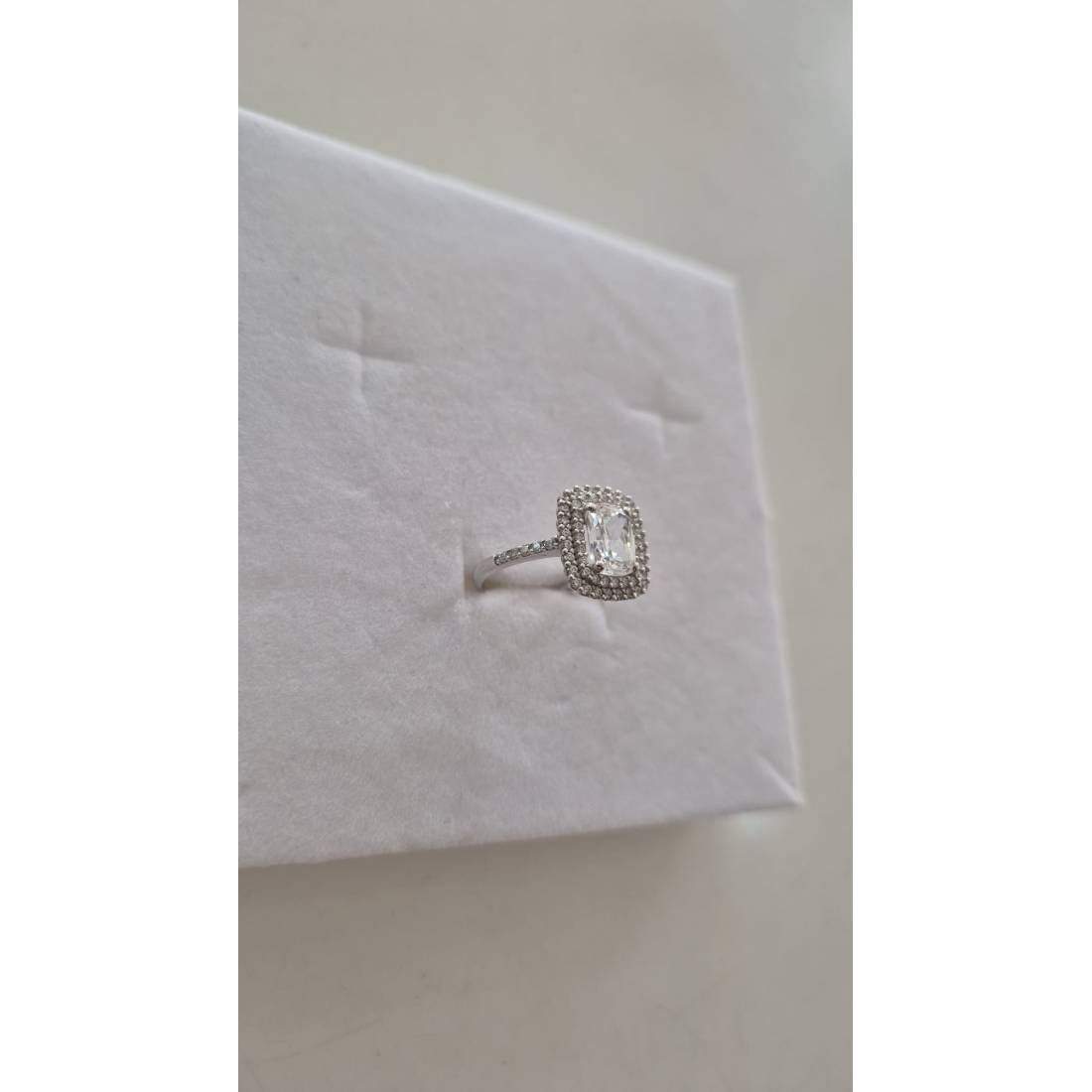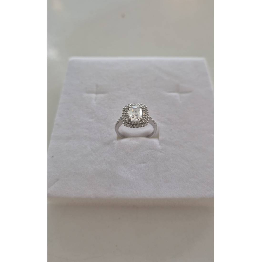 ANELLO Donna Pietra Centrale E Zirconi Tondi Bianchi ORO BIANCO 18 Karati 750%