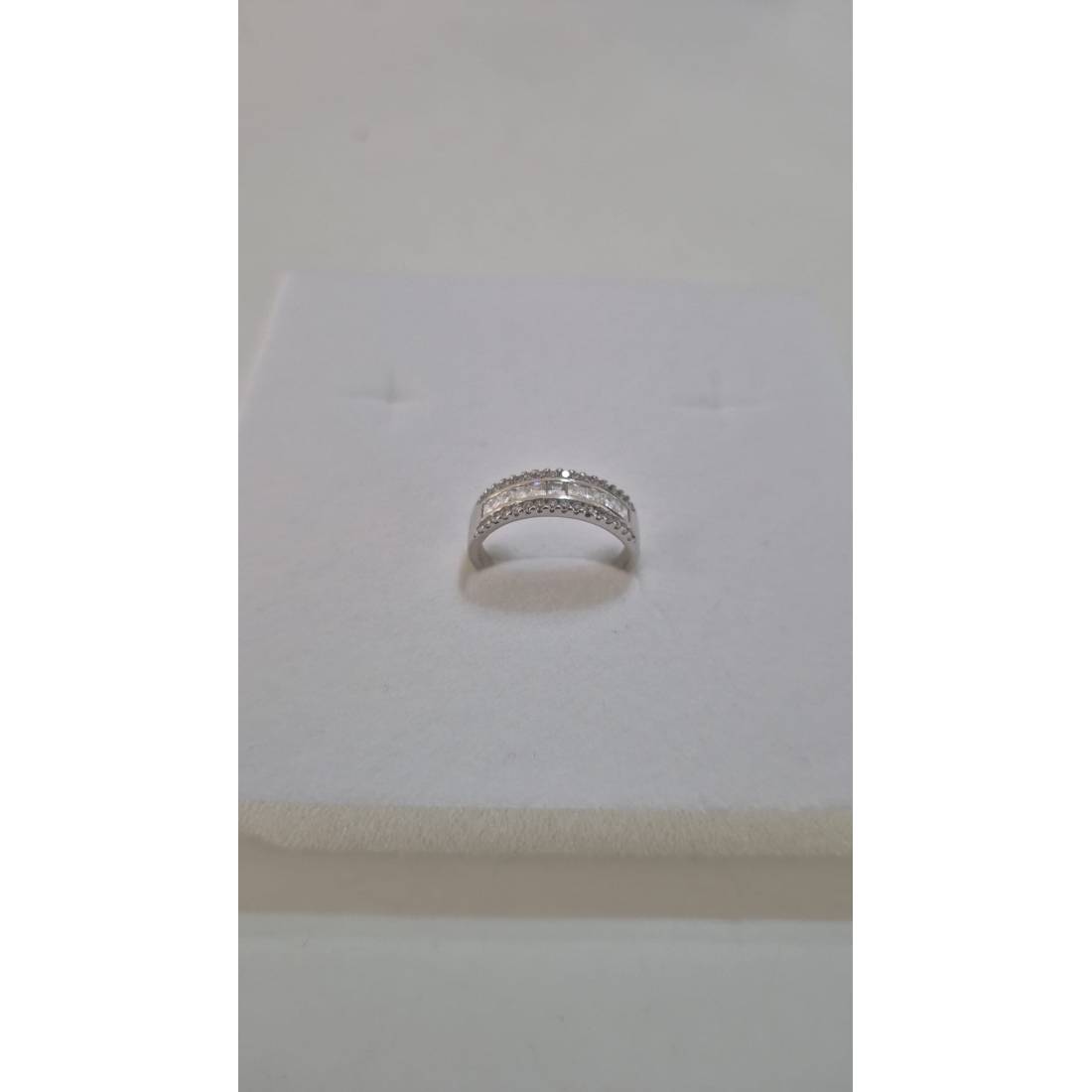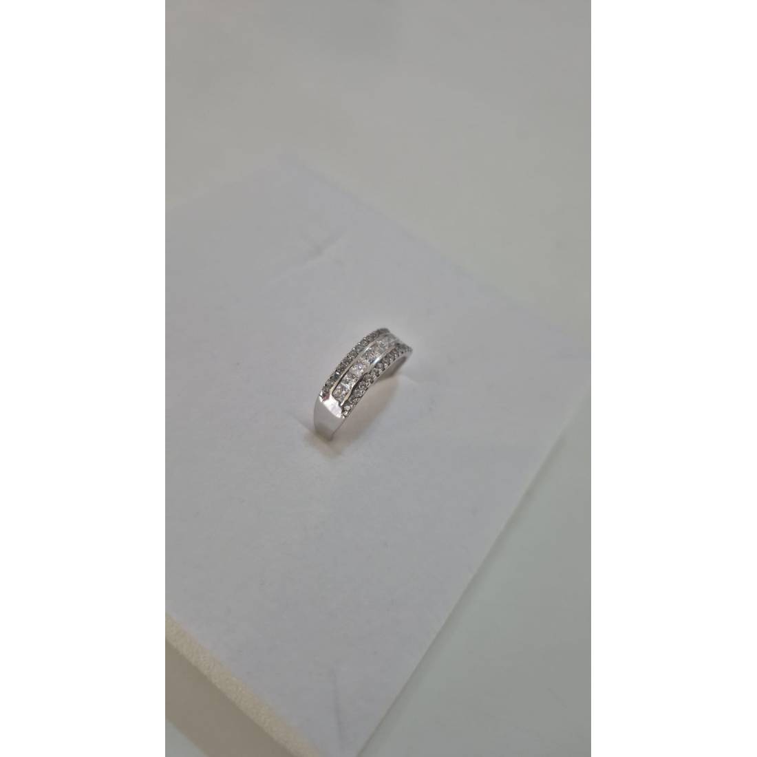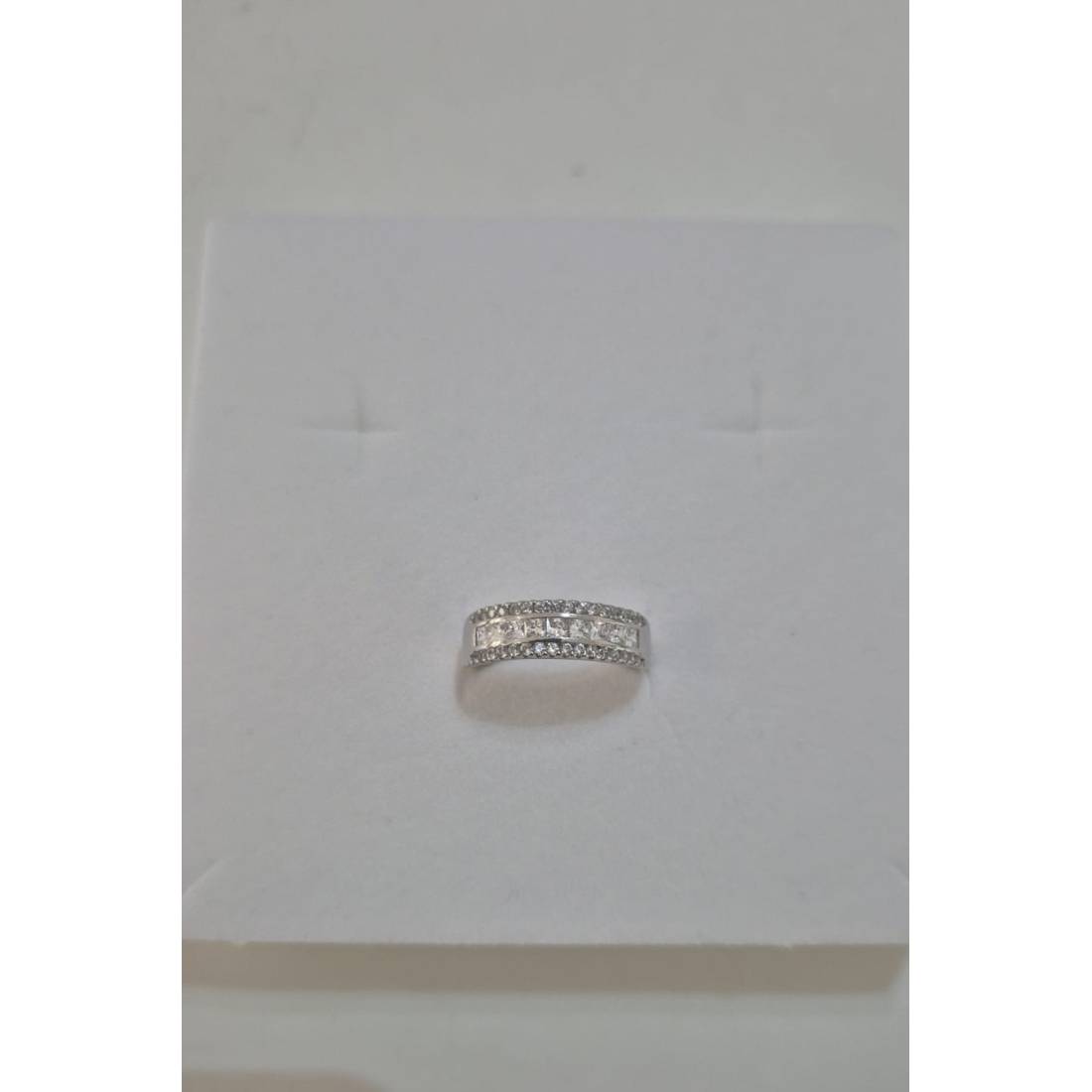 ANELLO Da Donna A Fascia Mezza Veretta Di Zirconi In ORO BIANCO 18 Karati 750%