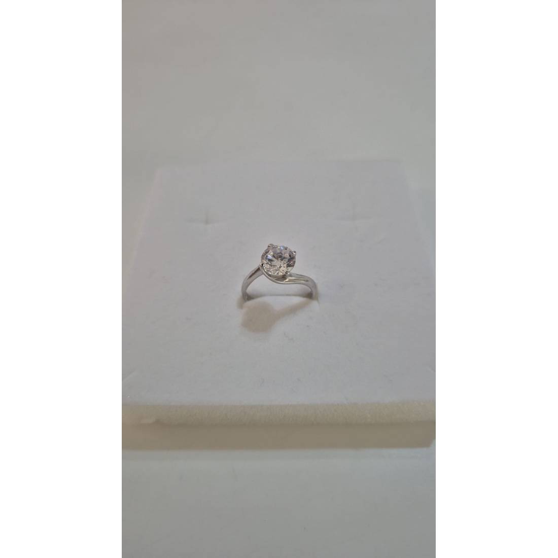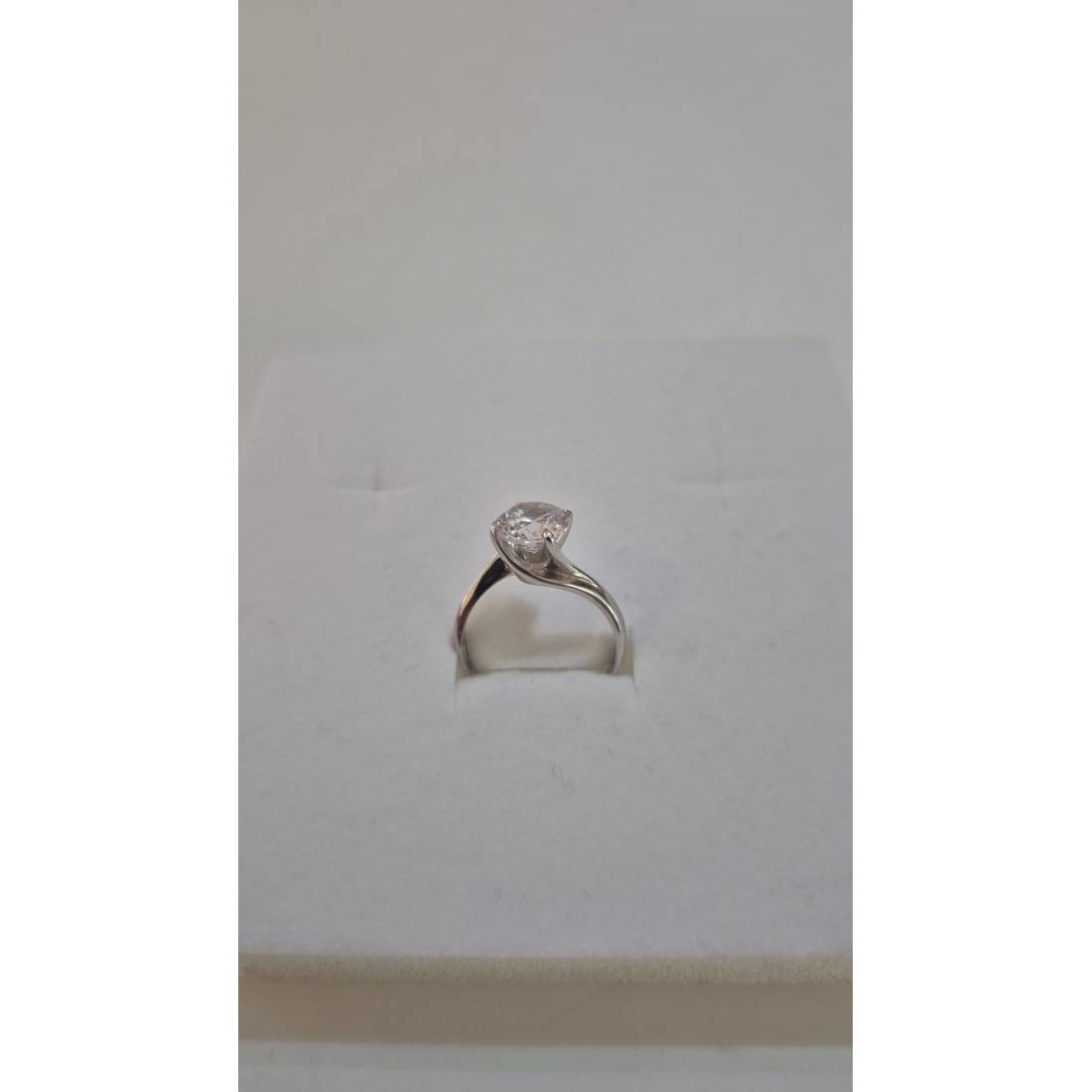 ANELLO Donna Solitario In ORO BIANCO 18 Karati 750% Con Zircone Grande Centrale
