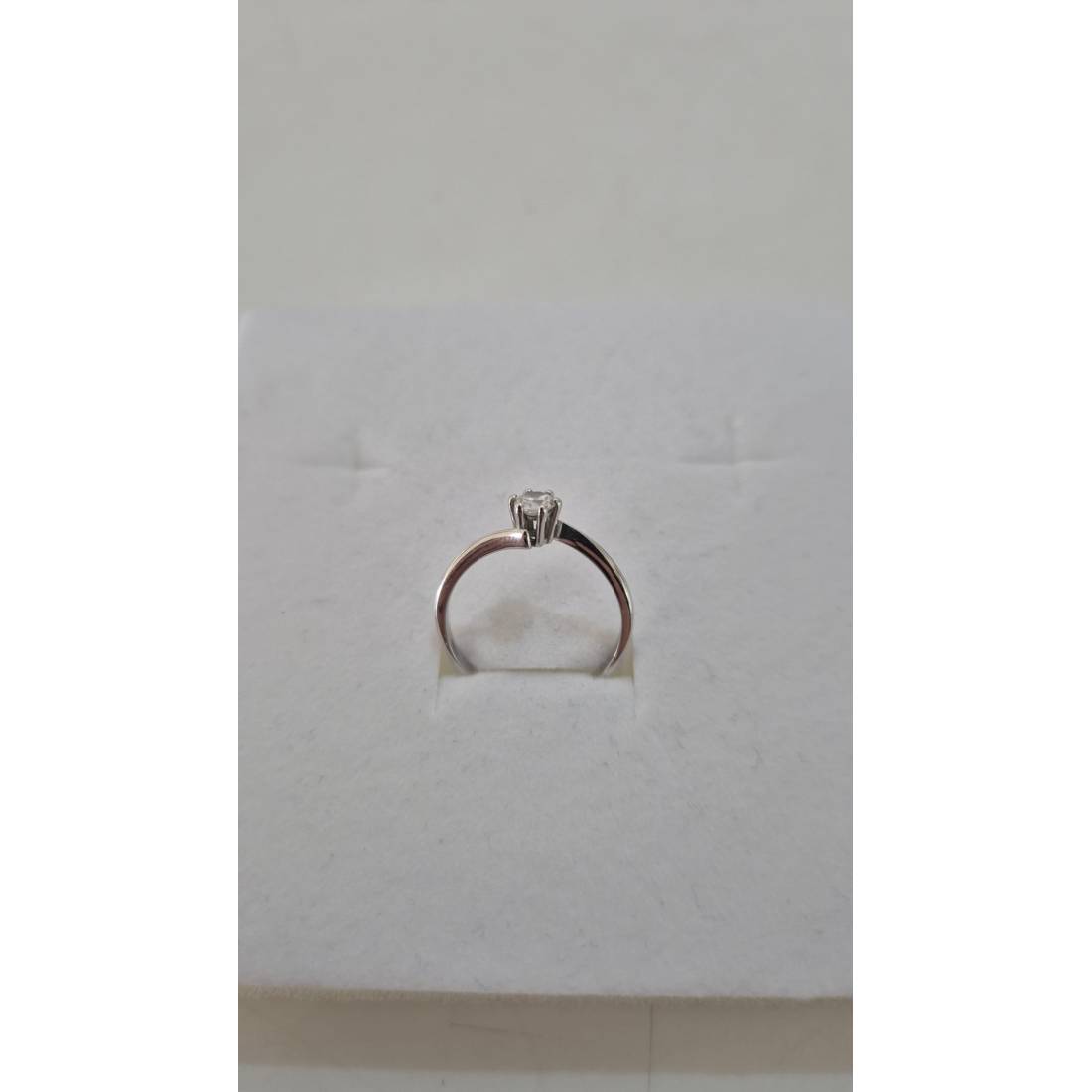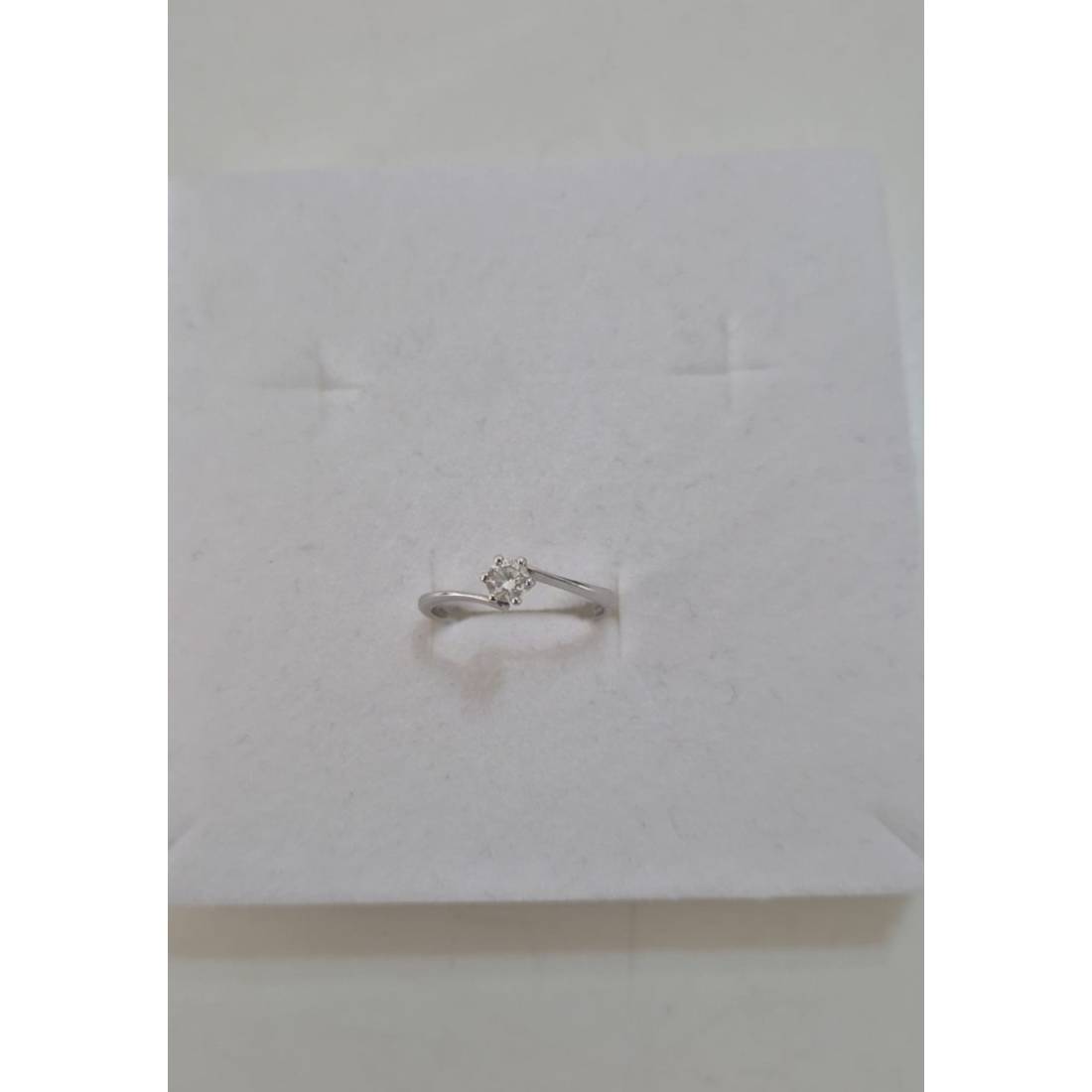 ANELLO Donna Solitario In ORO BIANCO 18 Karati 750% Con Zircone Centrale Rotondo