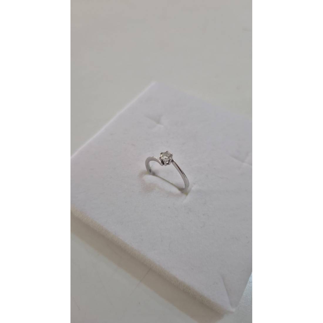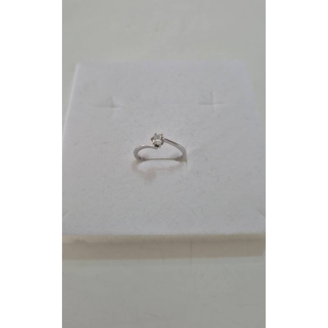 ANELLO Donna Solitario In ORO BIANCO 18 Karati 750% Con Zircone Centrale Rotondo
