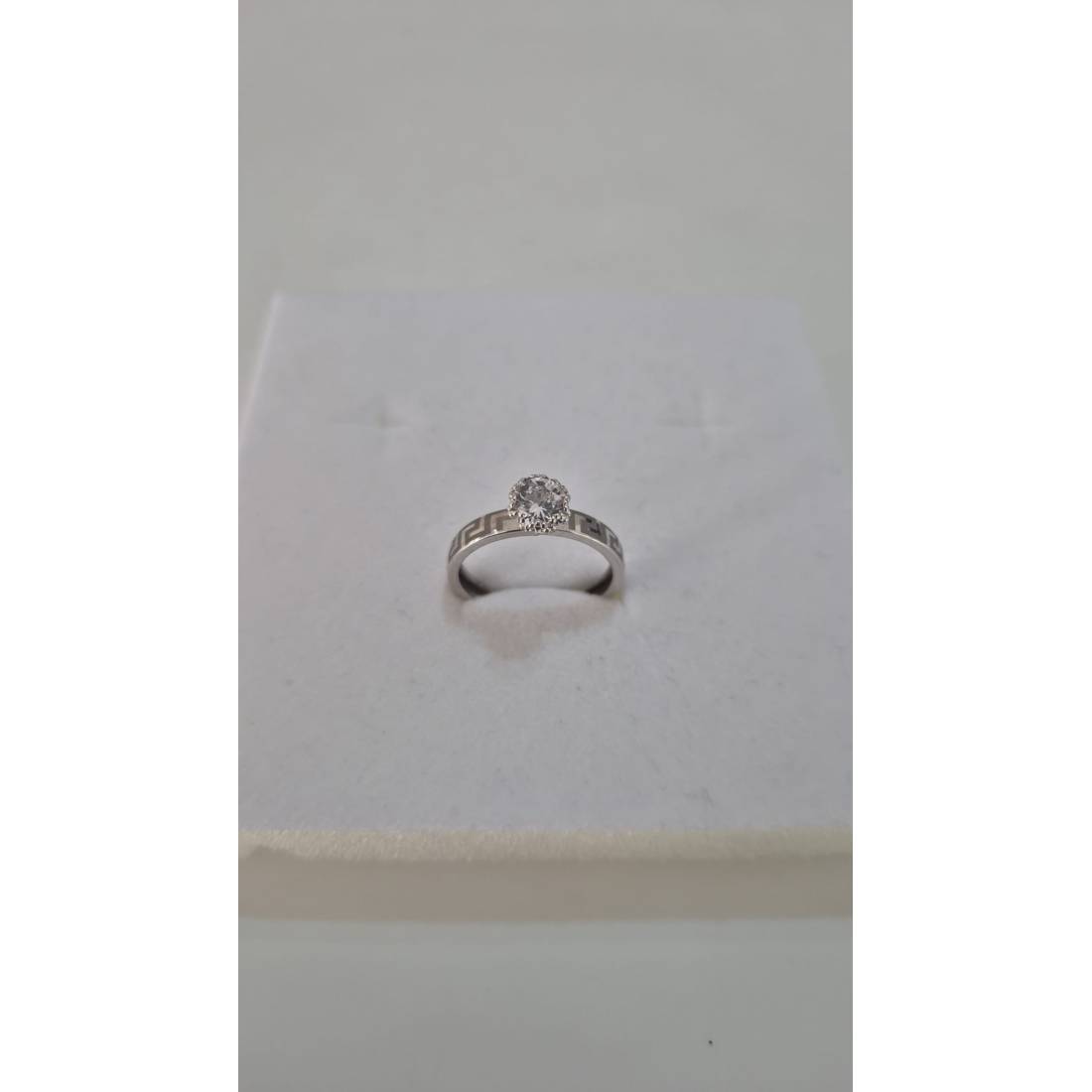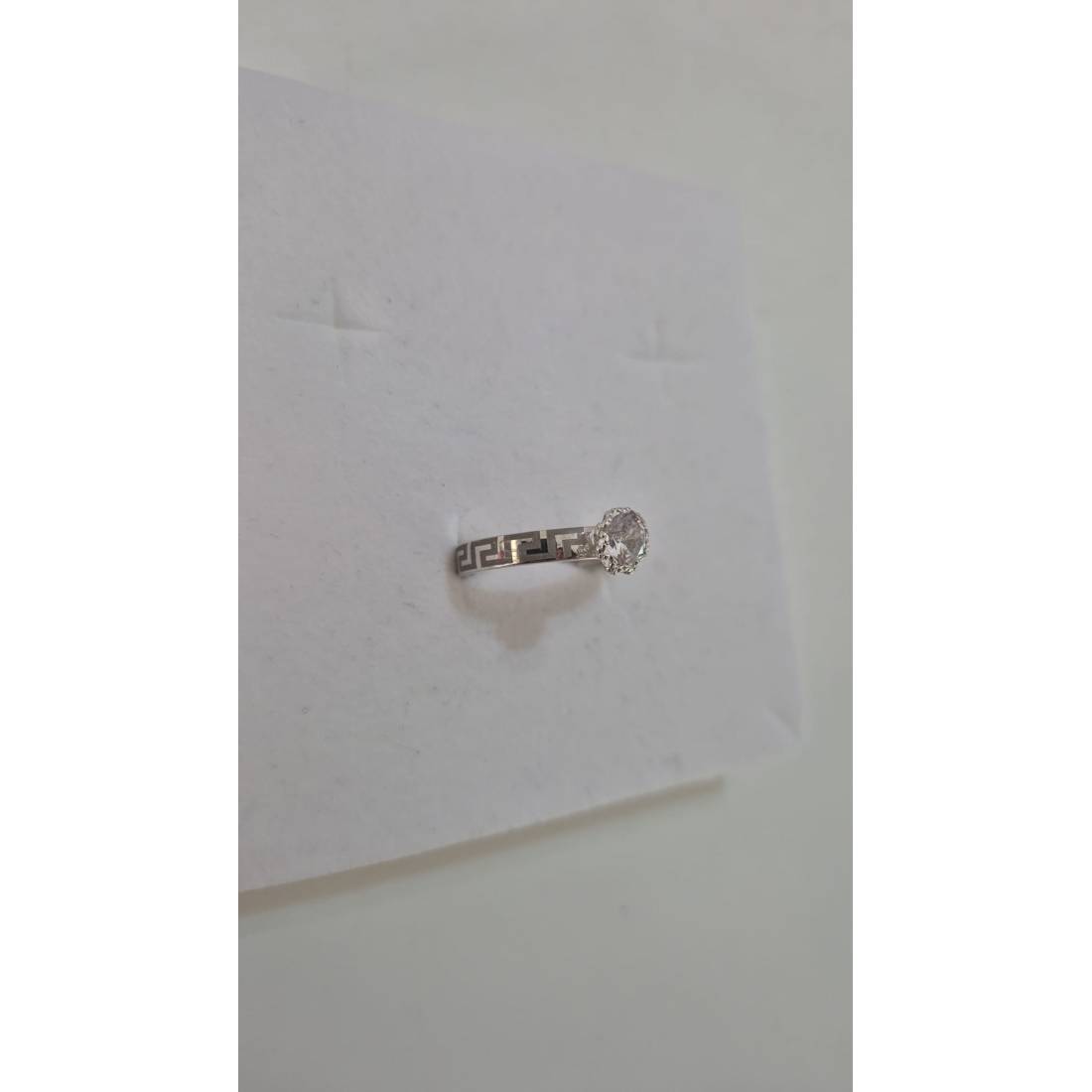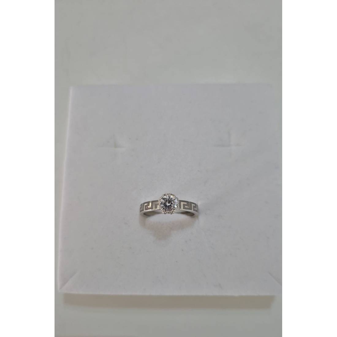 ANELLO Donna Solitario In ORO BIANCO 18 Karati 750% Con Greche E Zircone Rotondo