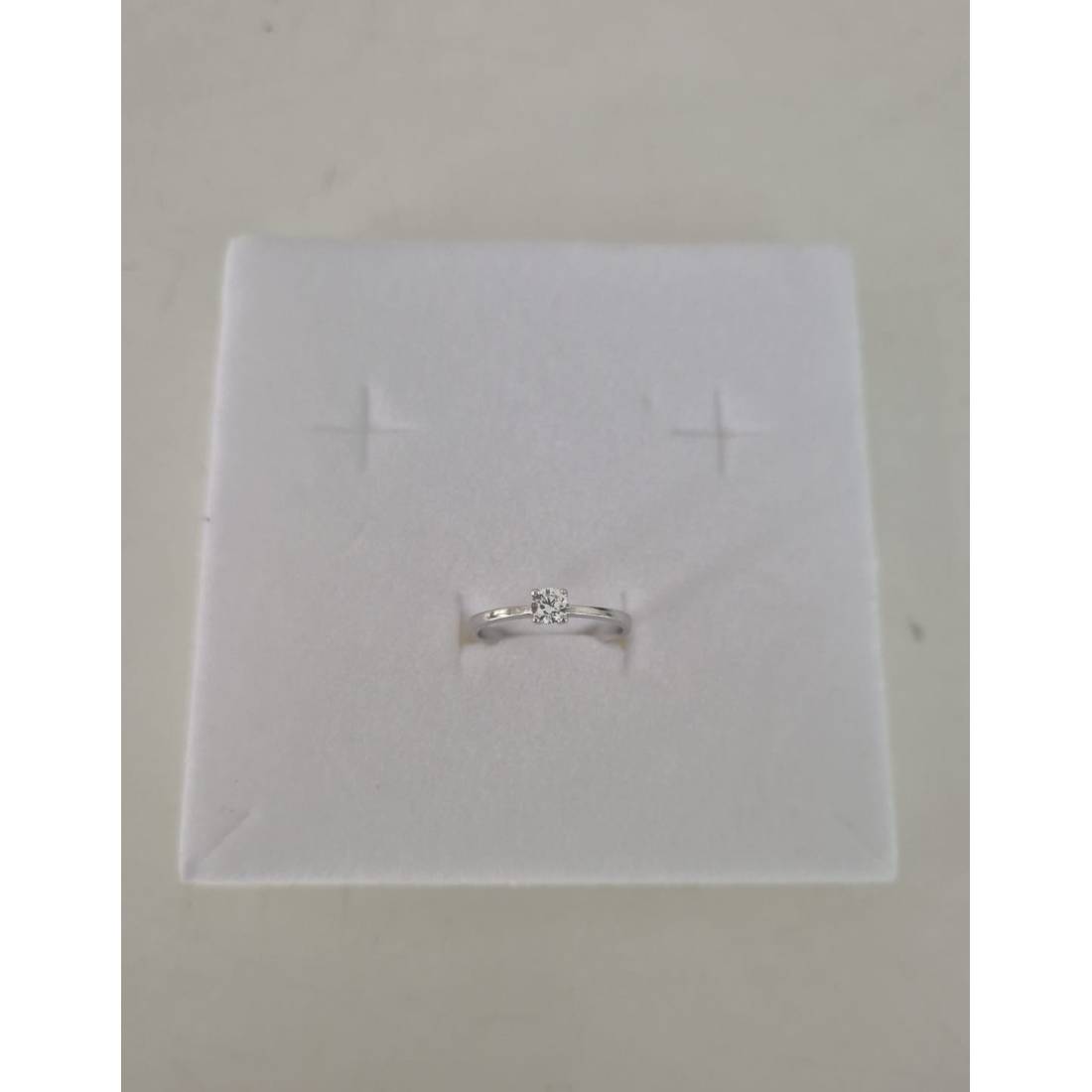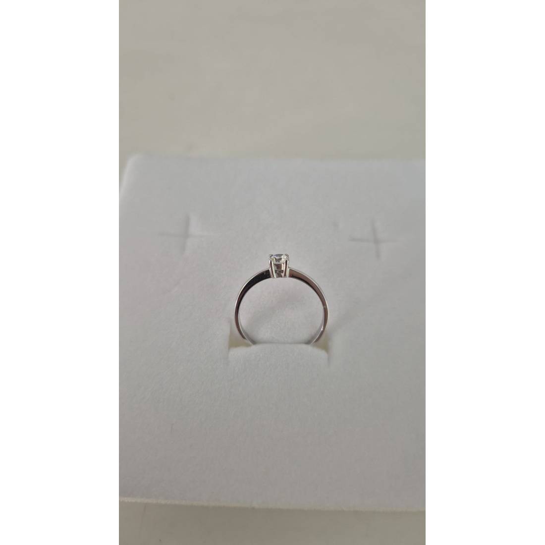 ANELLO Donna Solitario In ORO BIANCO 18 Karati 750% Con Zircone Centrale Rotondo