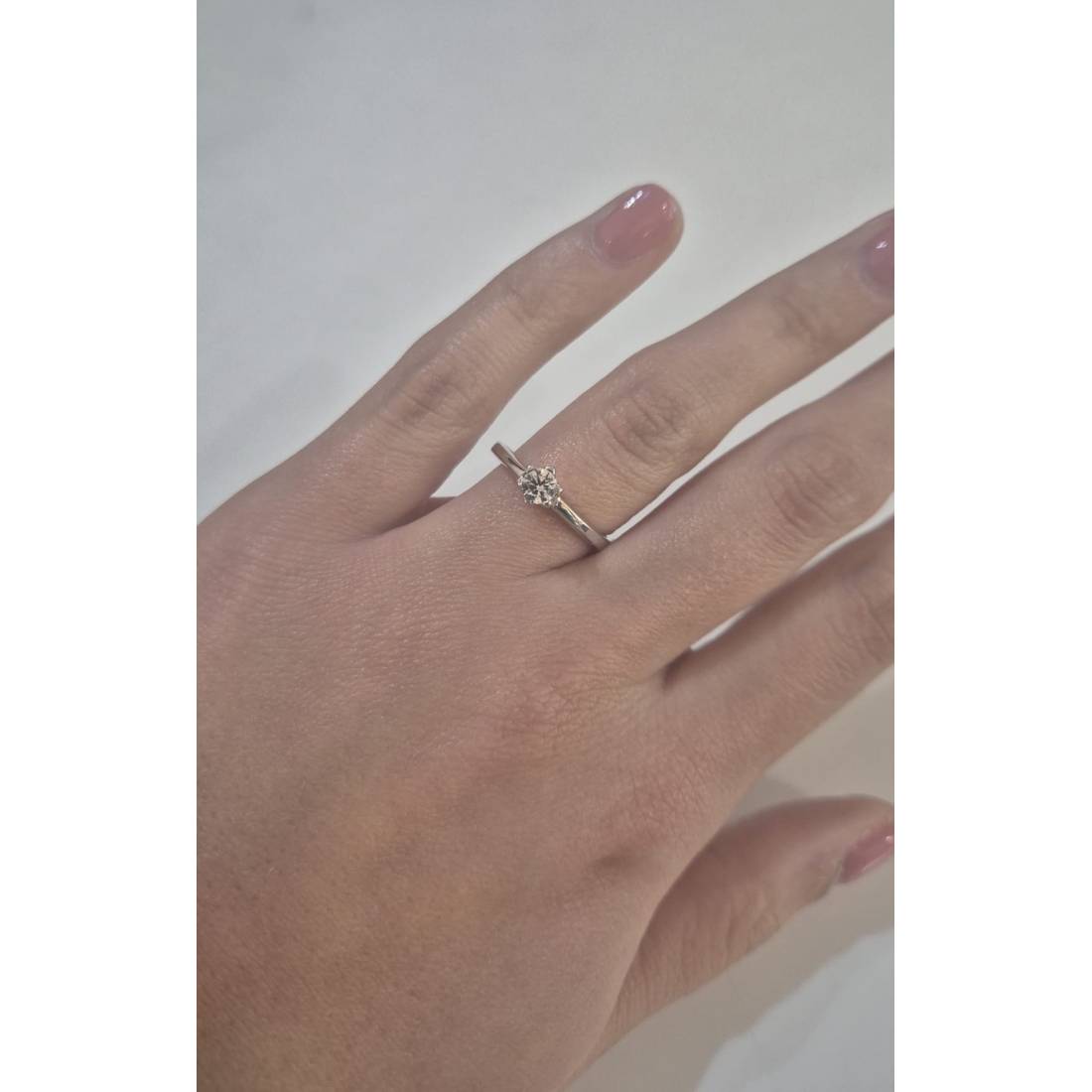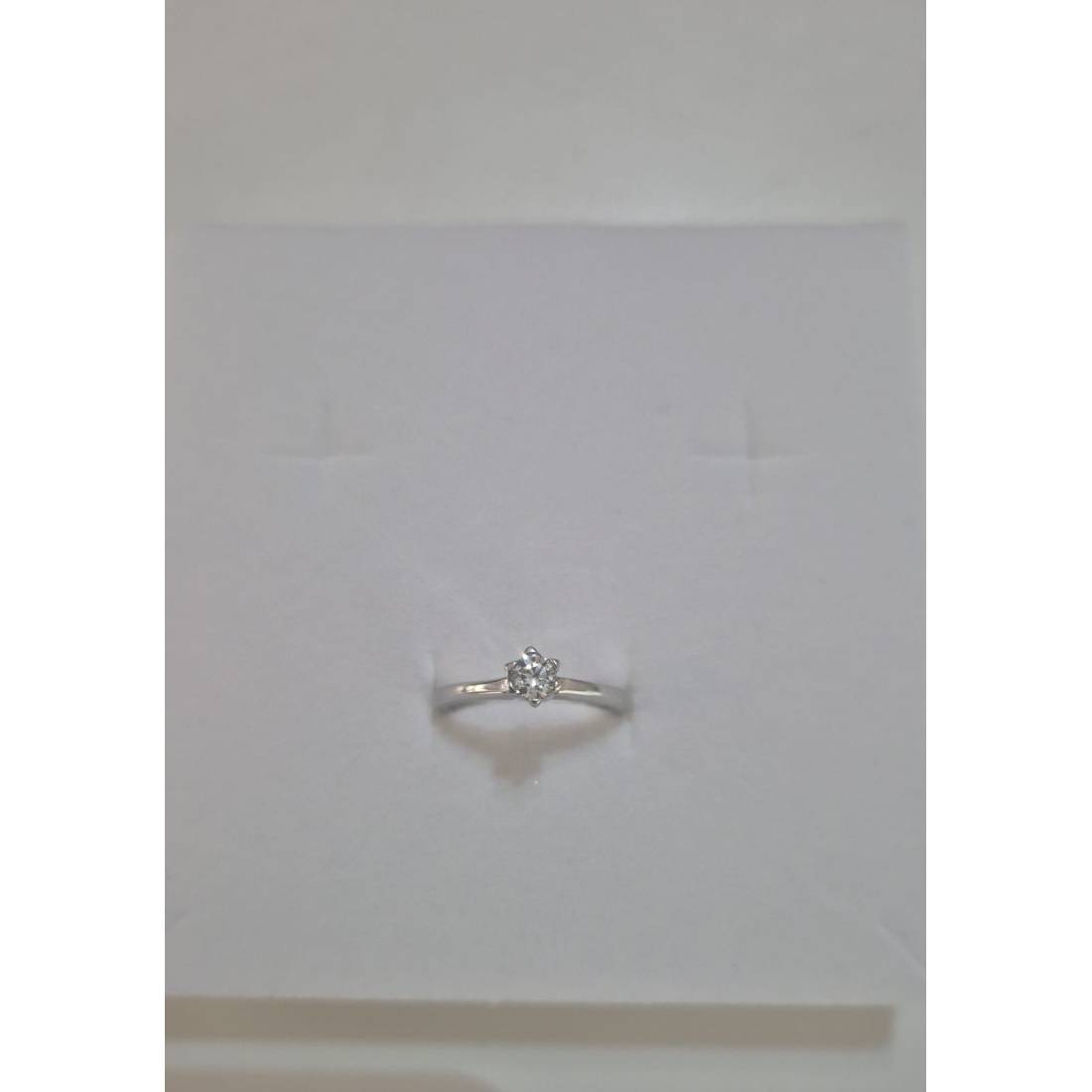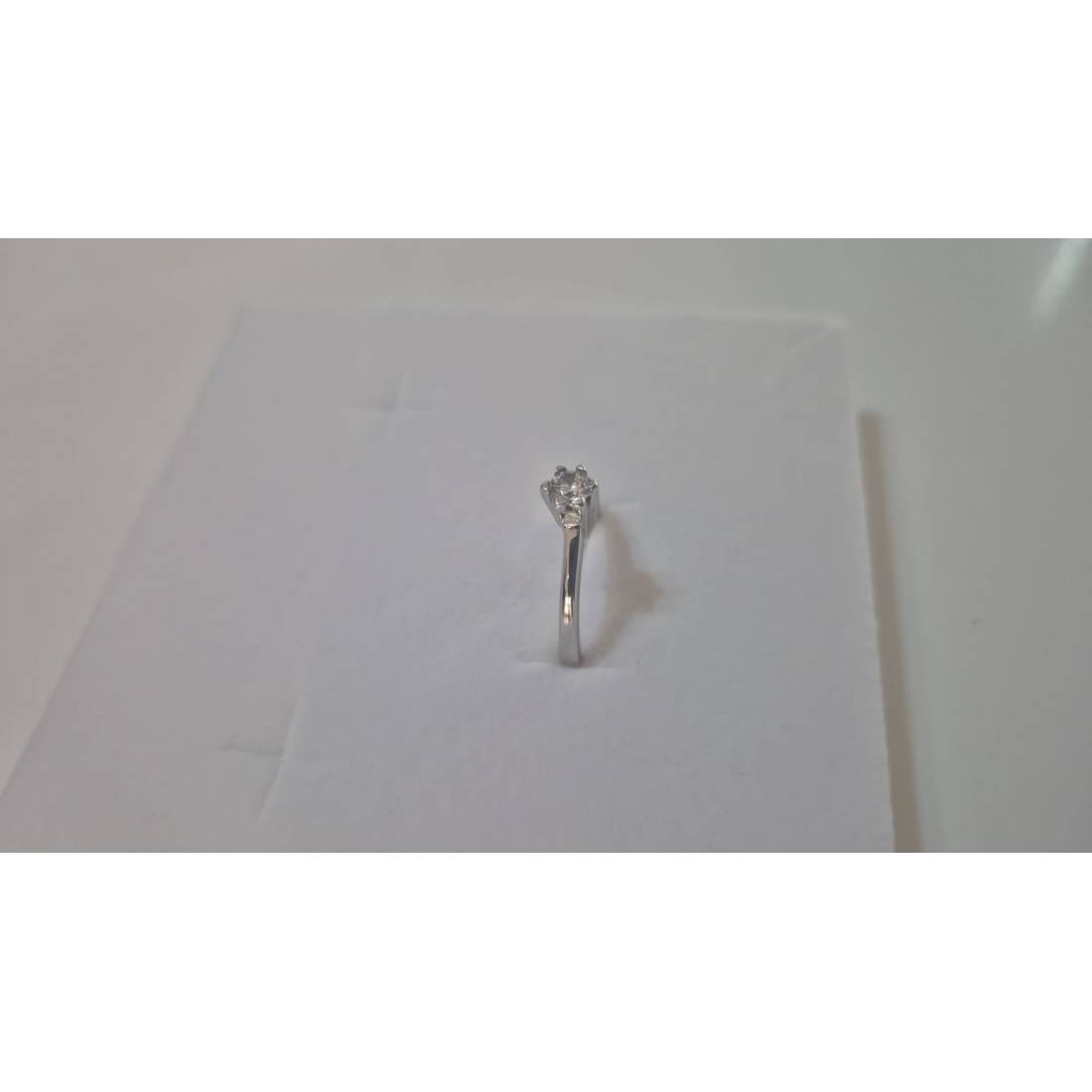 ANELLO Donna Solitario In ORO BIANCO 18 Karati 750% Con Zircone Centrale Rotondo