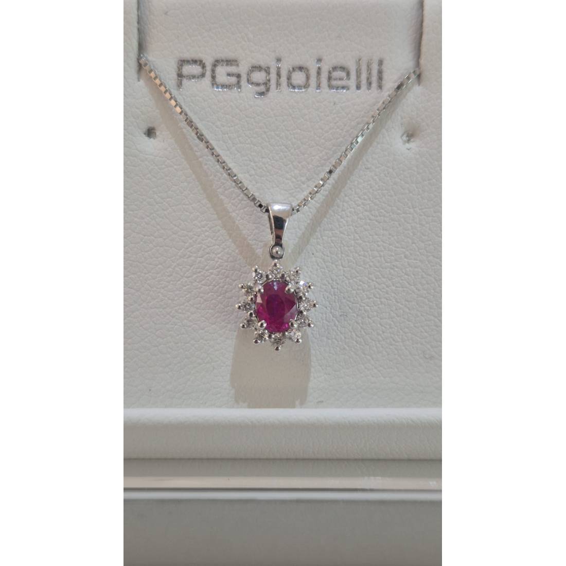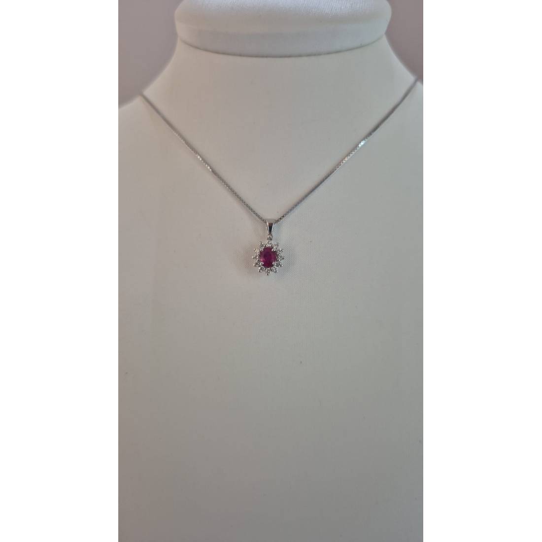COLLANA con RUBINO in oro bianco 18kt e diamanti