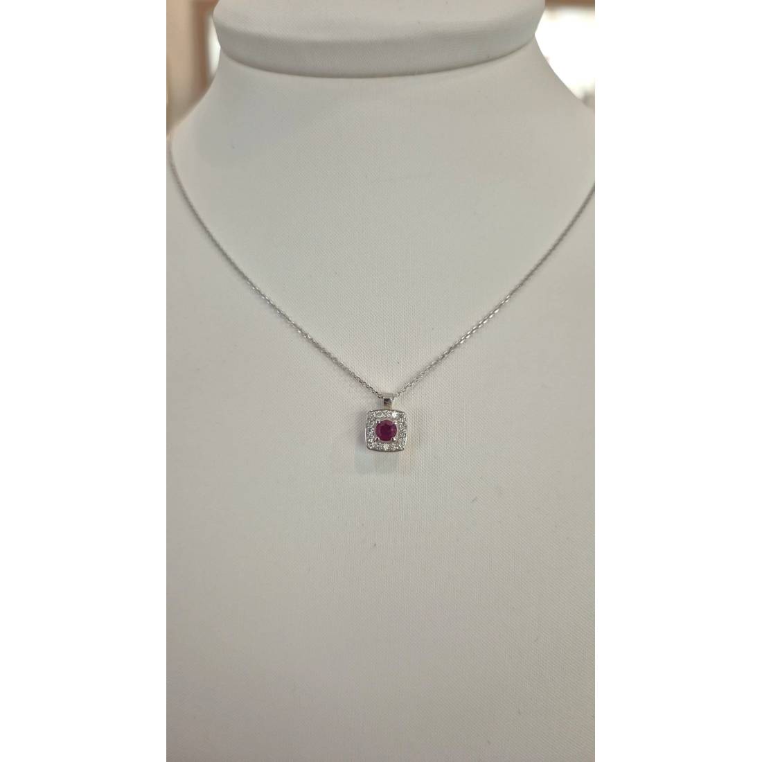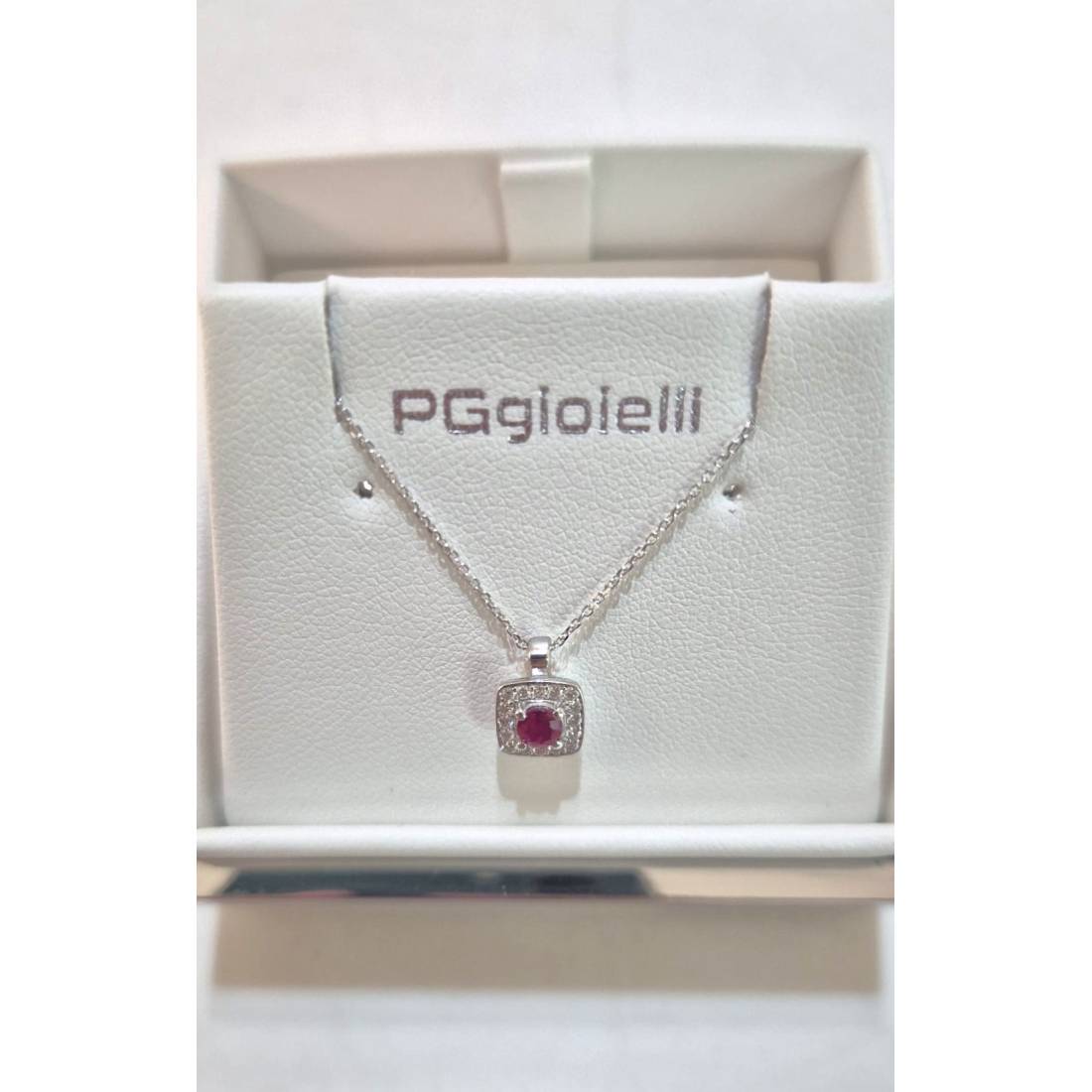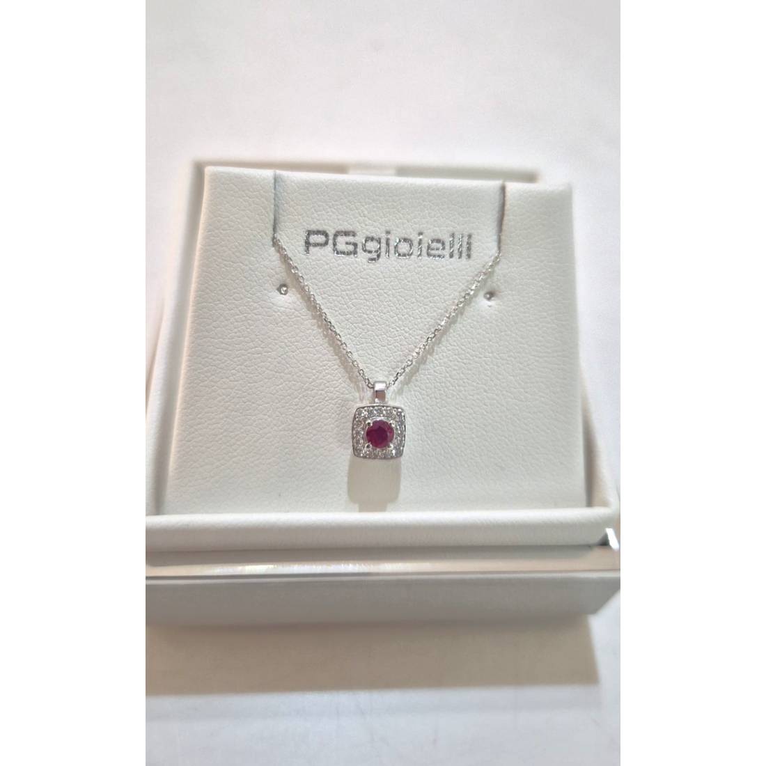 COLLANA con RUBINO in oro bianco 18kt e diamanti