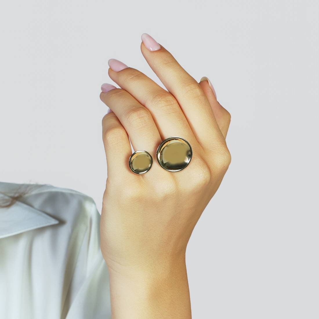 Anello design aperto con elementi a forma di tondo concavo. Aggiugi un tocco di design contemporaneo al tuo stile con questo anello della collezione Lux. Un gioiello donna moderno ed elegante per valorizzare ogni outfit con semplicità e classe. Gli elementi tondi cattureranno ogni luce ed illumineranno anche il più sobrio dei look. Un accessorio unico ed originale, idea regalo perfetta per chi ama distinguersi