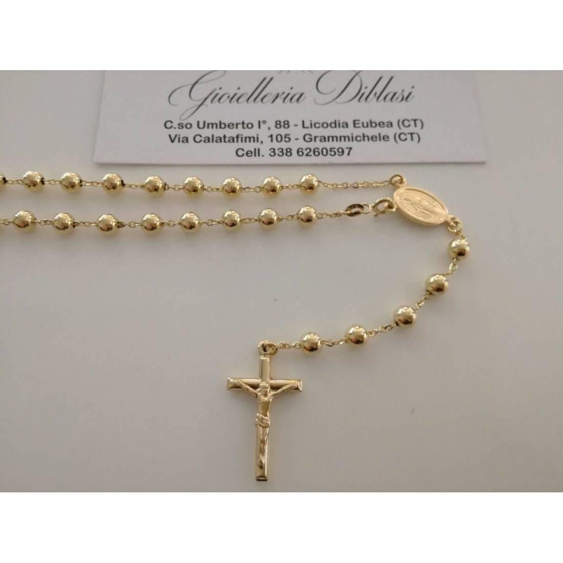 COLLANA ROSARIO Collier ORO GIALLO 18 Kt 750% CATENINA Uomo Donna Sfere Lucide