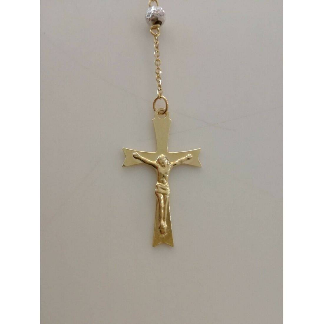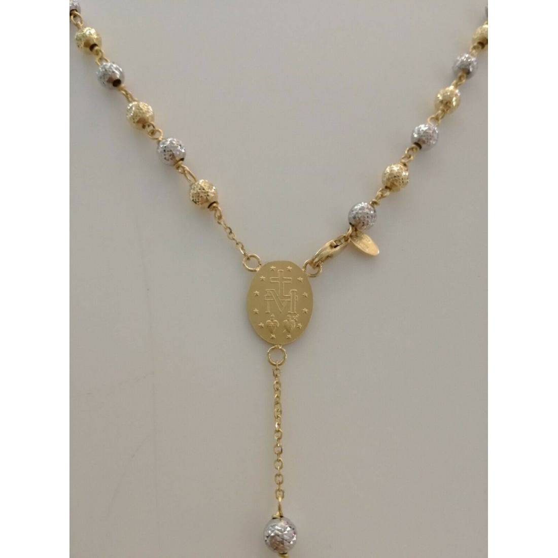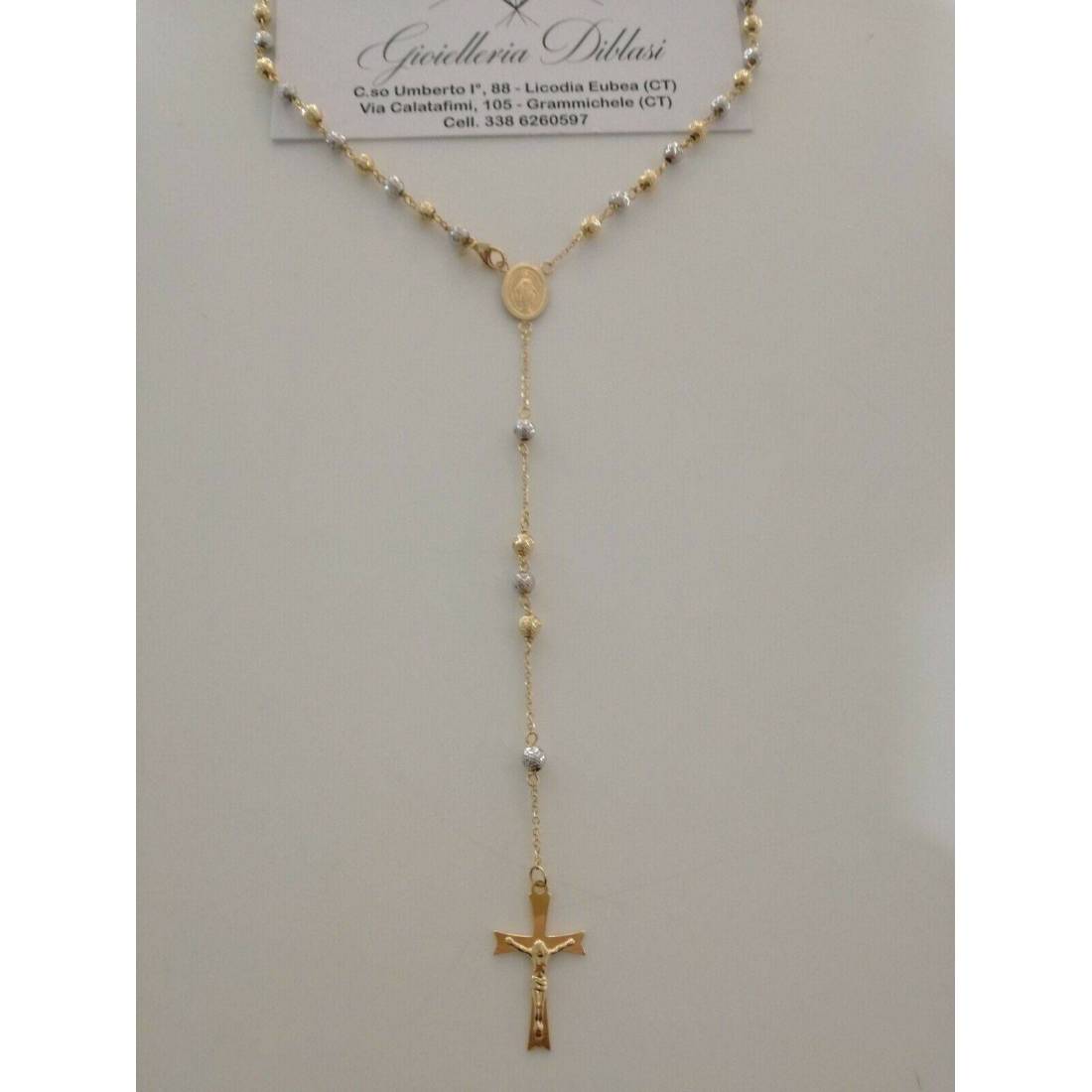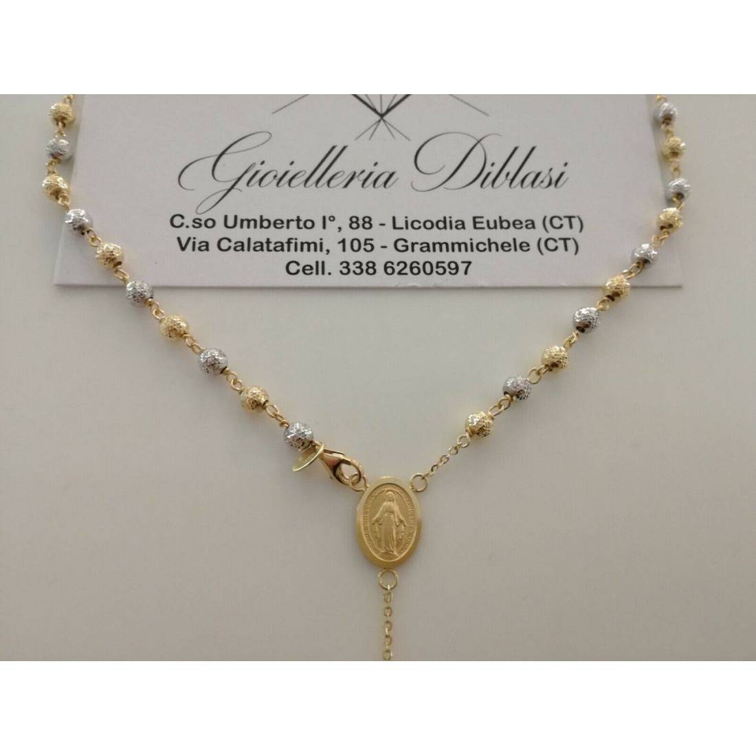 COLLANA ROSARIO ORO Giallo Bianco 18Kt 750% CATENINA Uomo Donna Sfere Diamantate