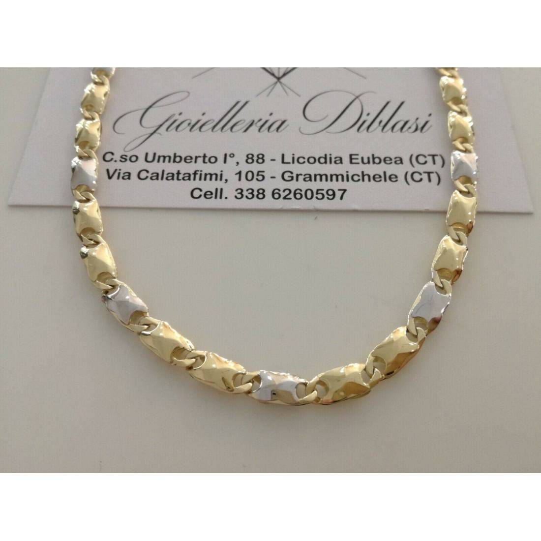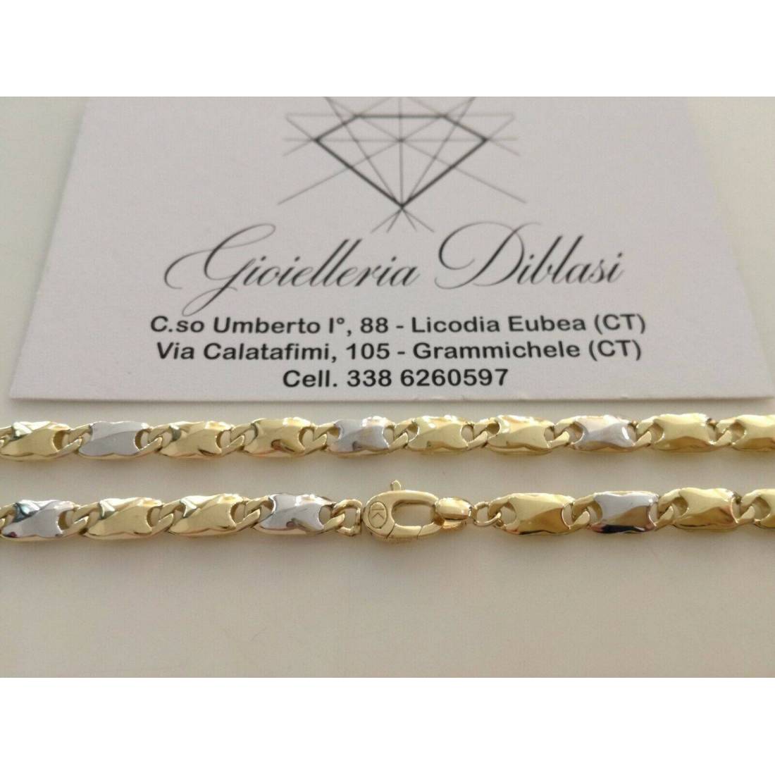 COLLANA Collier CATENA Girocollo ORO 18 KT 750% GIALLO BIANCO Bicolor Uomo Donna