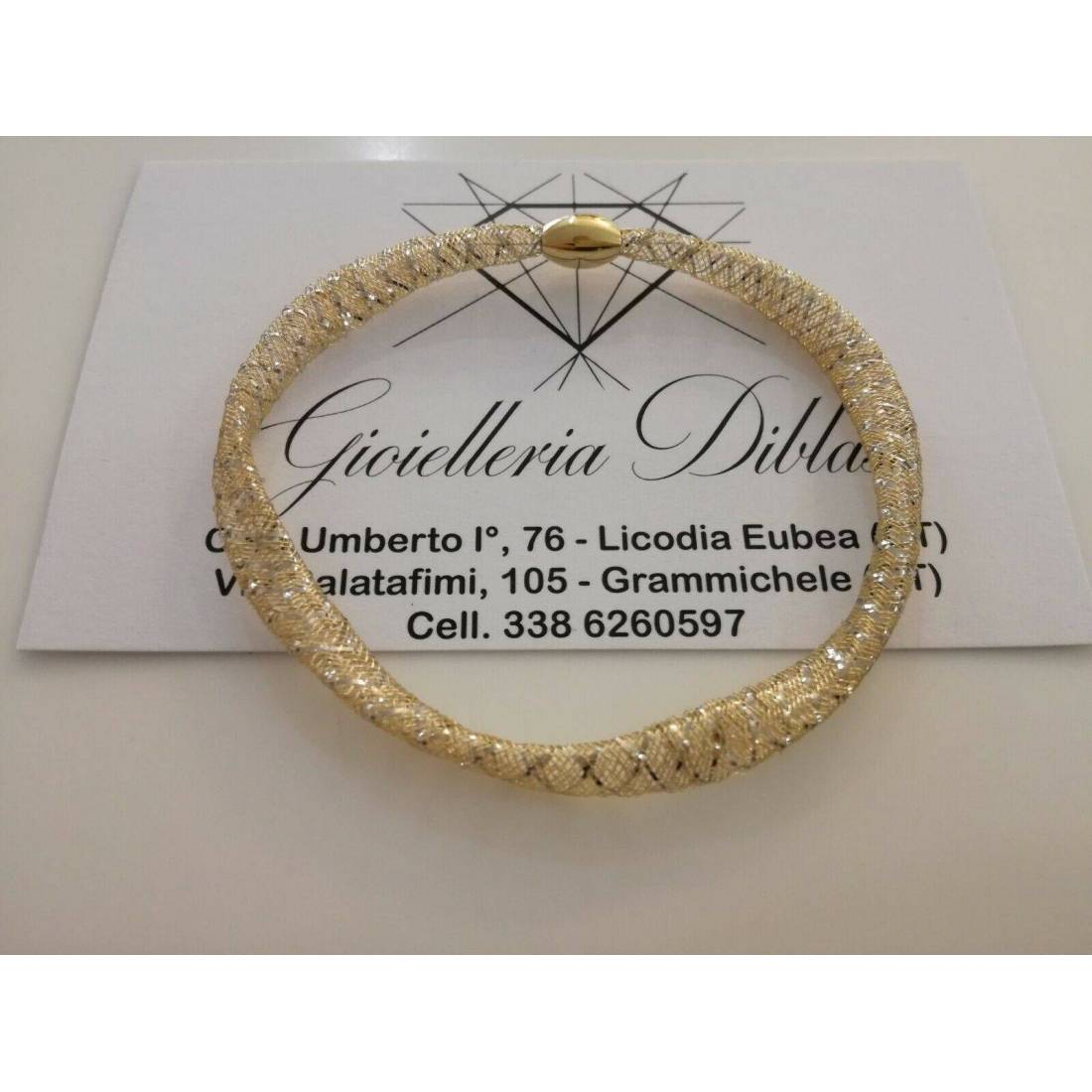 BRACCIALE In ORO Bicolore GIALLO BIANCO 18 KT 750% MAGLIA ELASTICA Made In Italy