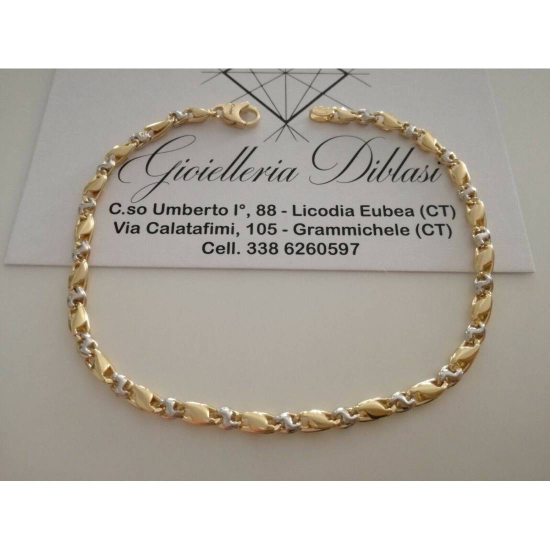 BRACCIALE In ORO Bicolore GIALLO BIANCO 18 Karati 750% Uomo Donna Maglia CATENA