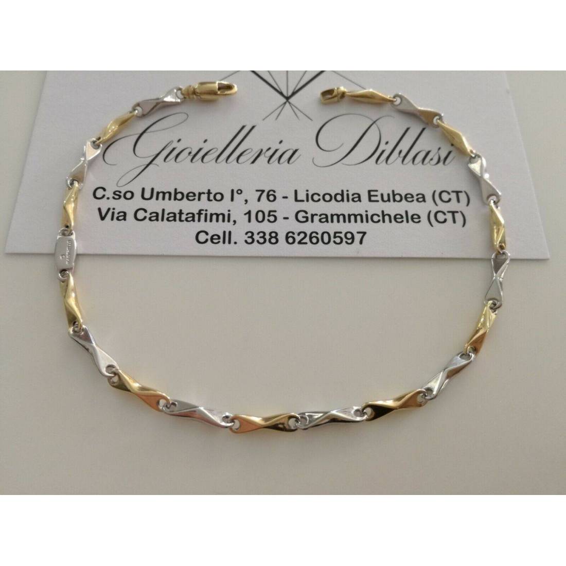 BRACCIALE In ORO Bicolore GIALLO BIANCO 18 Karati 750% Uomo Donna Maglia CATENA