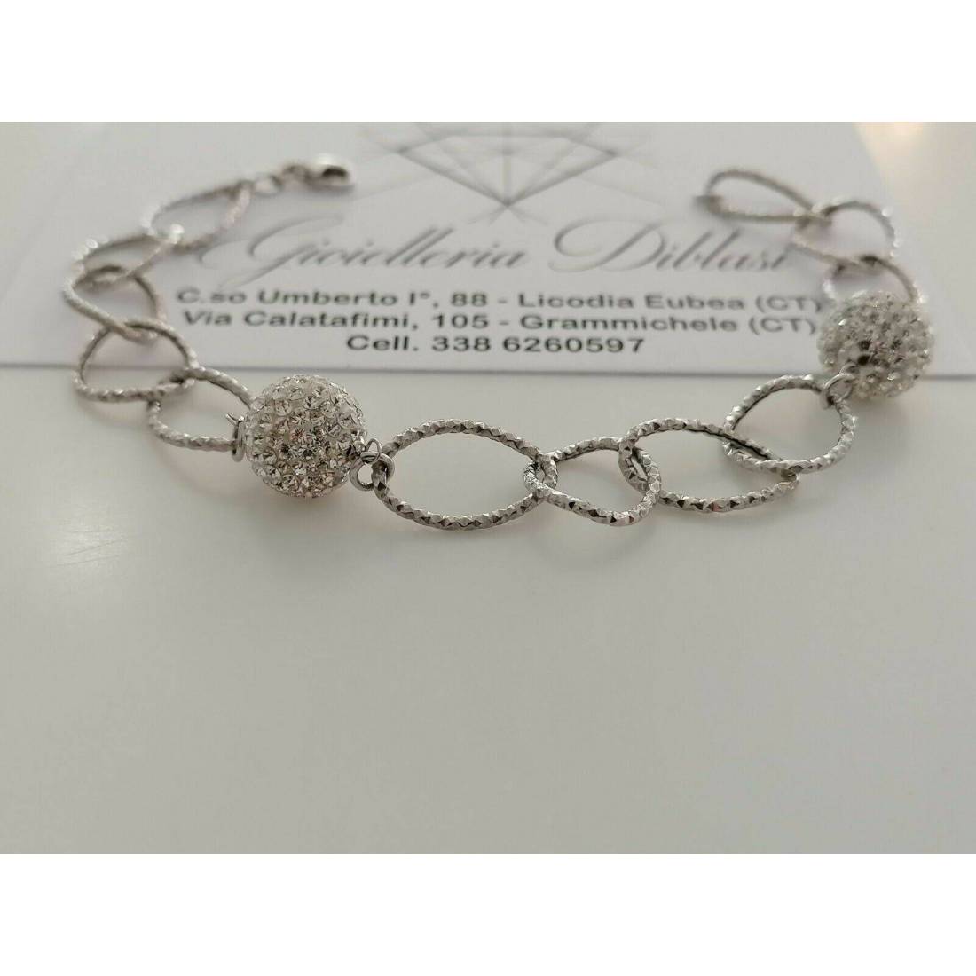 BRACCIALE ORO BIANCO Donna 18 Karati 750% Maglia CATENA Con Ovali E Swarovski