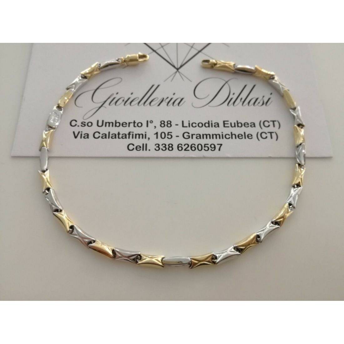 BRACCIALE ORO 18 Kt 750% Uomo Donna Unisex Bicolore GIALLO BIANCO Maglia Catena