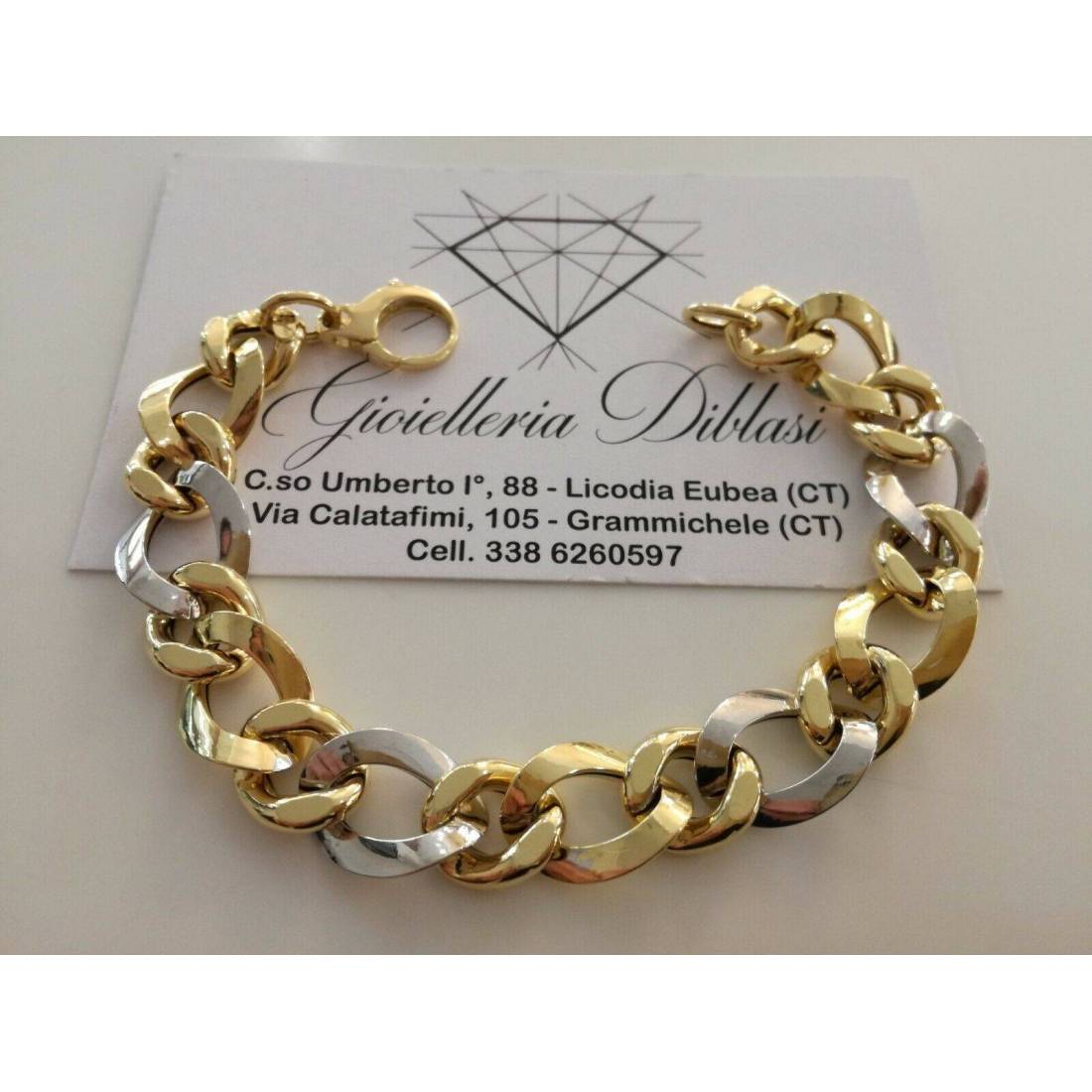 BRACCIALE In ORO 18 Karati 750% GIALLO BIANCO Donna Bicolore Maglia Ovali CATENA