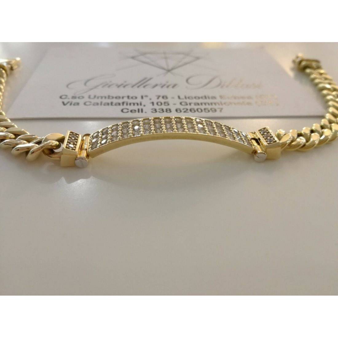 BRACCIALE ORO GIALLO 18 Karati 750%/1000 Uomo Donna Unisex Maglia CATENA Zaffiri