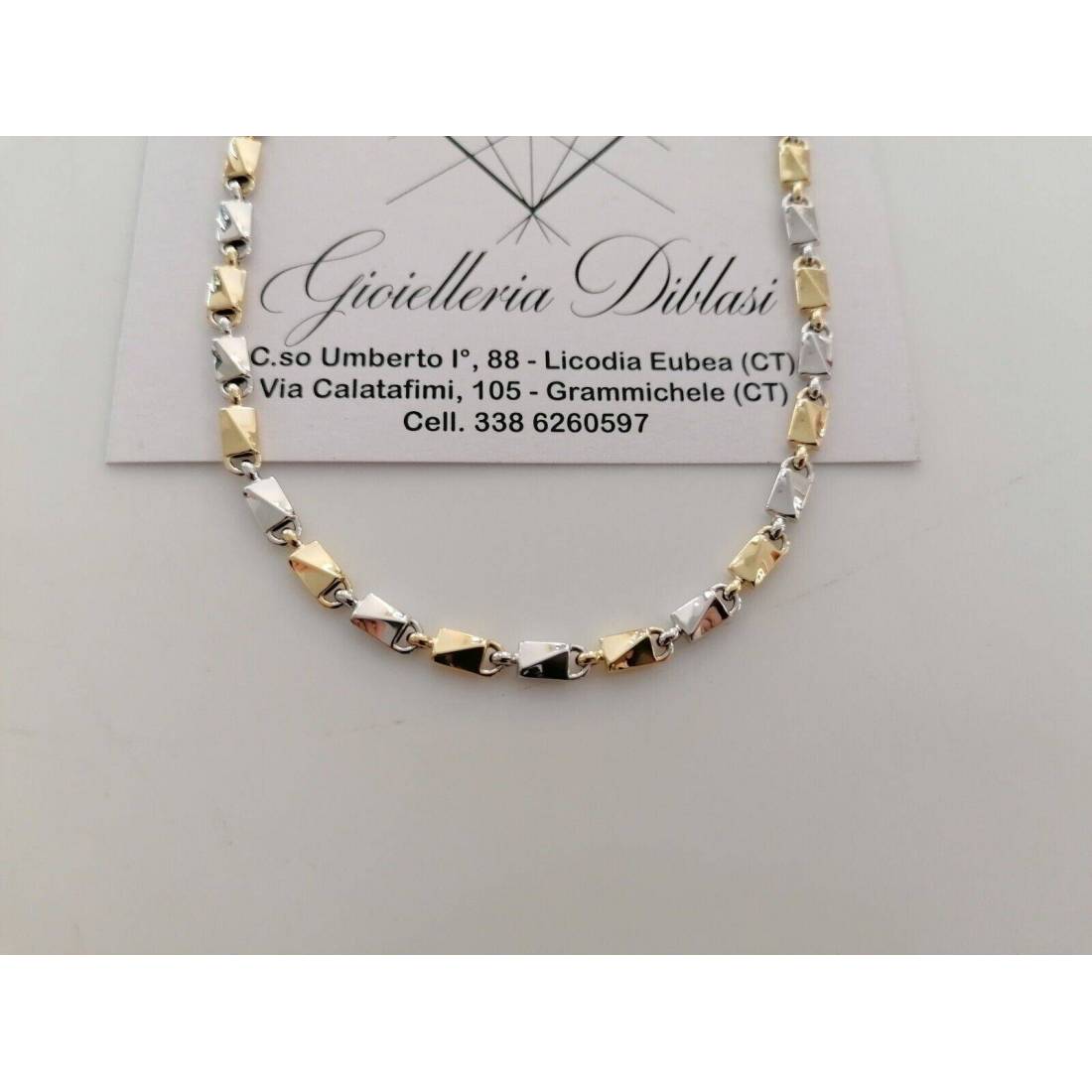 COLLANA In ORO Bicolore GIALLO BIANCO 18 Kt 750% Unisex Collier Catena Girocollo
