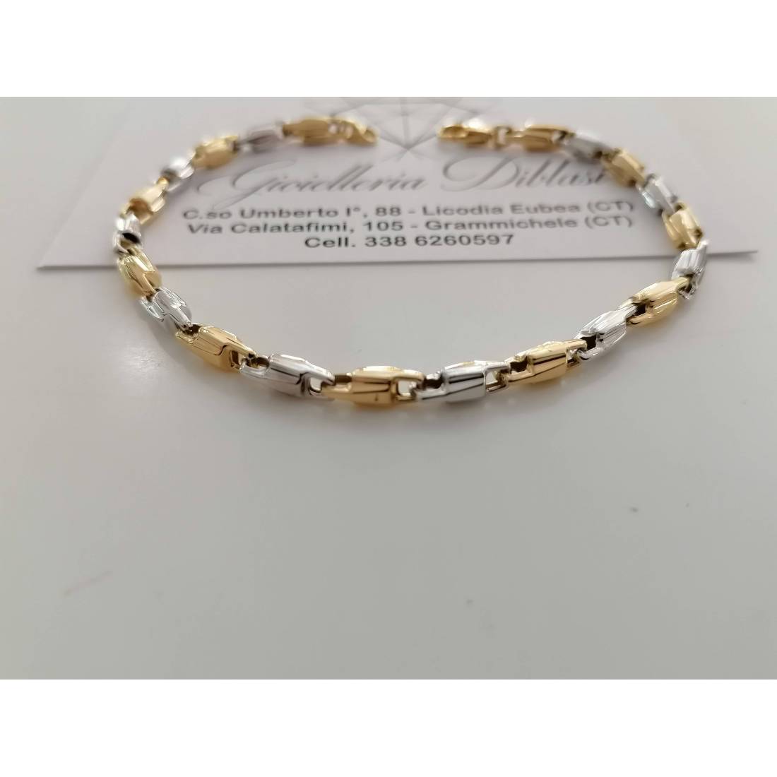 BRACCIALE In ORO 18 Karati 750% Uomo Donna Bicolore GIALLO BIANCO Maglia Catena - 1