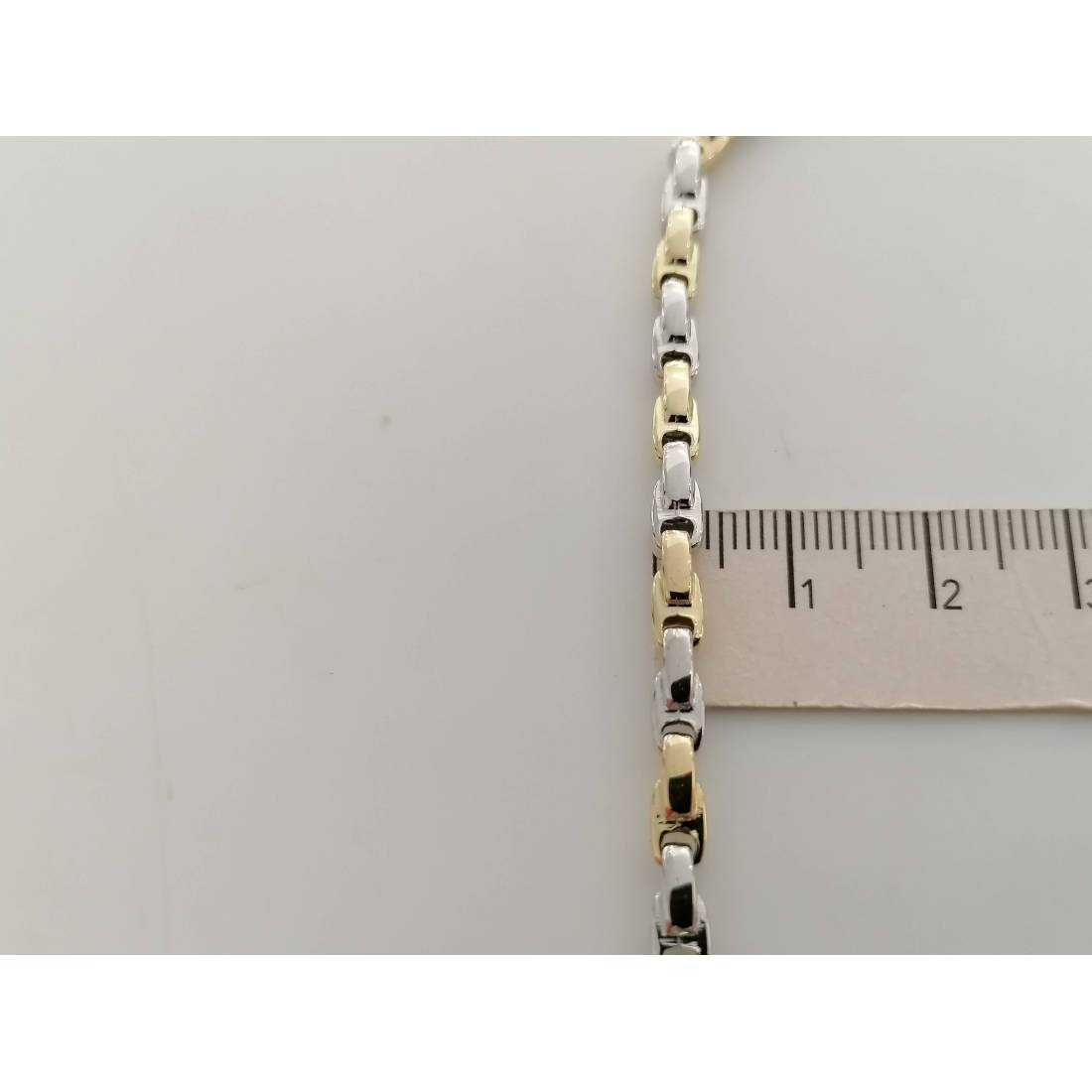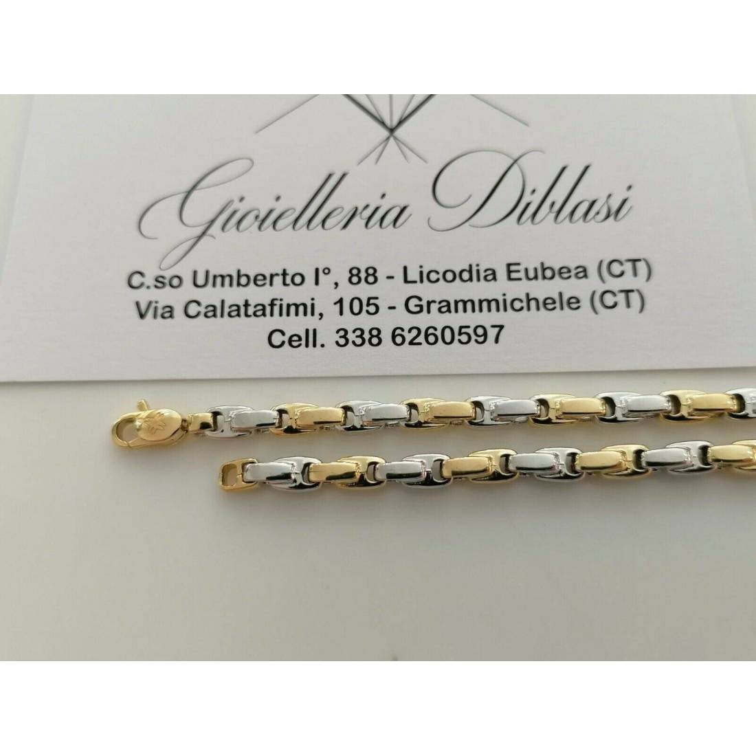 BRACCIALE In ORO Bicolore GIALLO BIANCO 18 Karati 750% Uomo Donna Maglia Catena