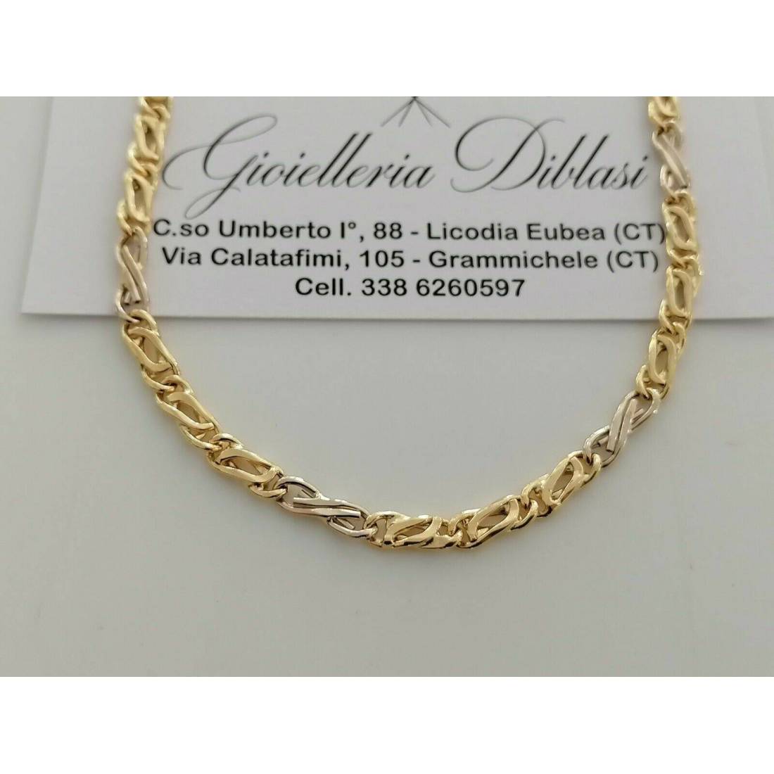 COLLANA Collier CATENA Girocollo ORO 18 KT 750% GIALLO BIANCO Maglia Uomo Donna