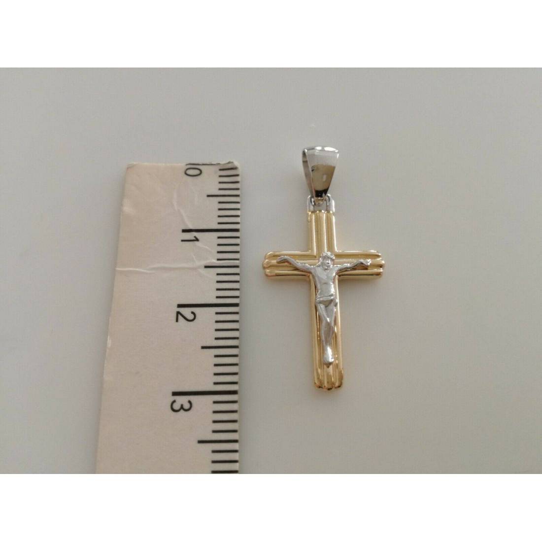 CIONDOLO CROCE Sacra CROCEFISSO CRISTO Pendente Oro 18 Kt 750% Giallo e Bianco