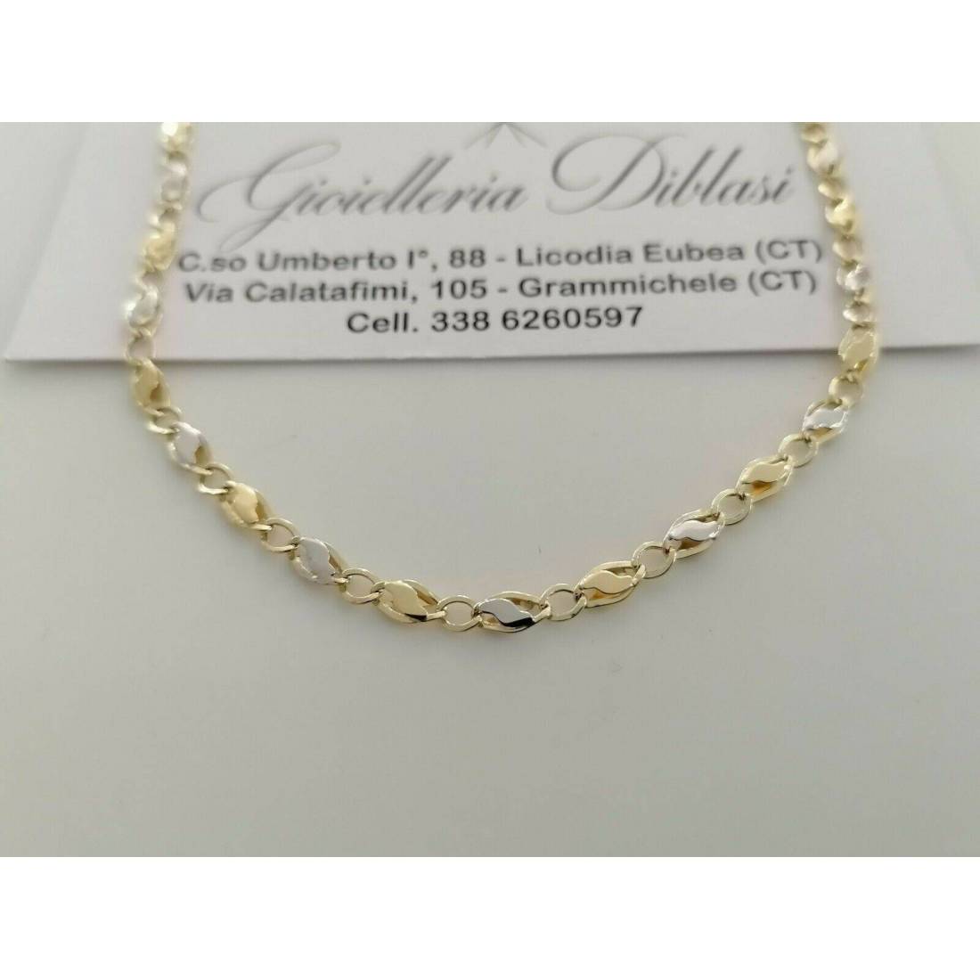 COLLANA Collier CATENA Girocollo ORO 18 KT 750% GIALLO BIANCO Maglia Uomo Donna