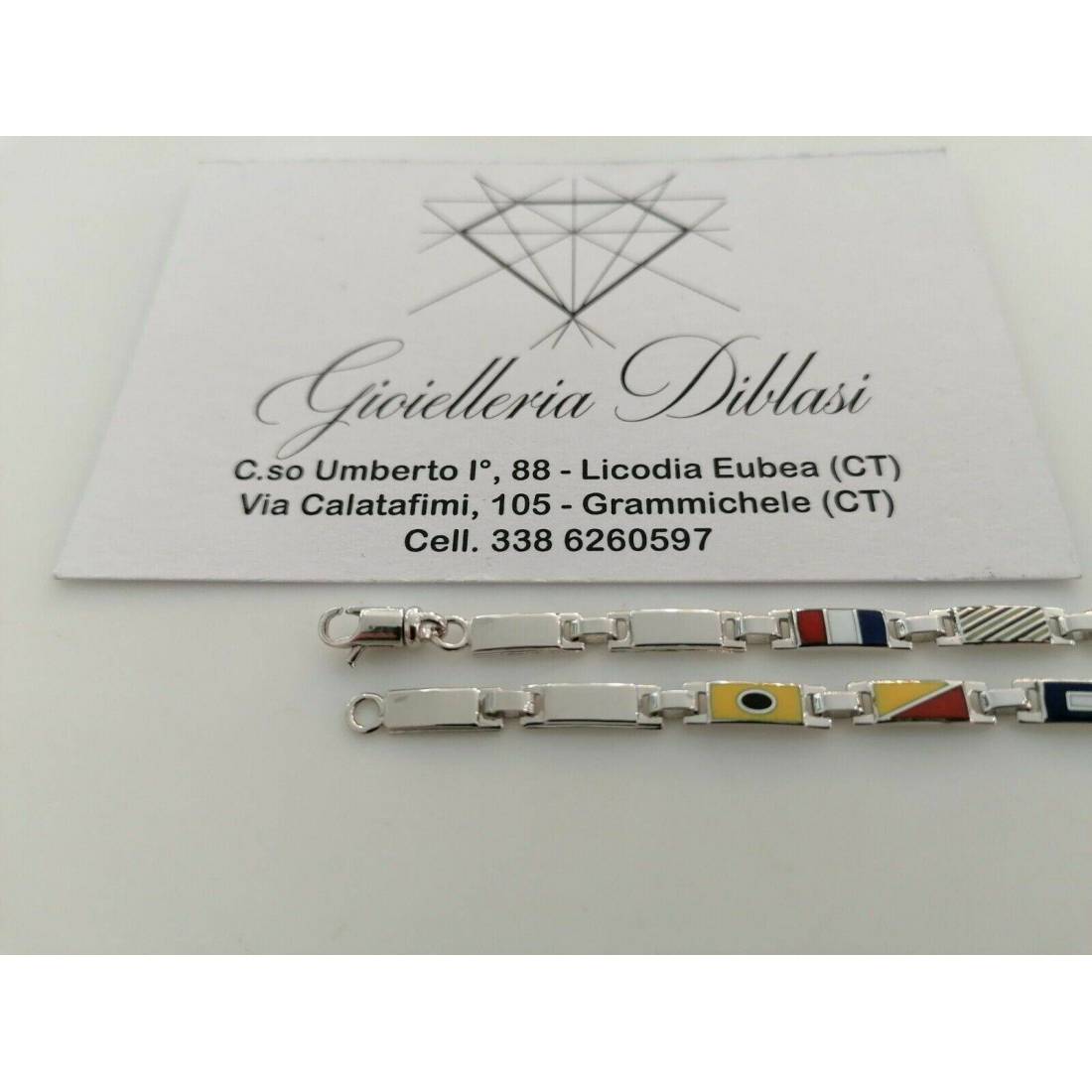 BRACCIALE Uomo In ORO BIANCO 18 Karati 750%1000 Maglia Con Bandierine Colorate