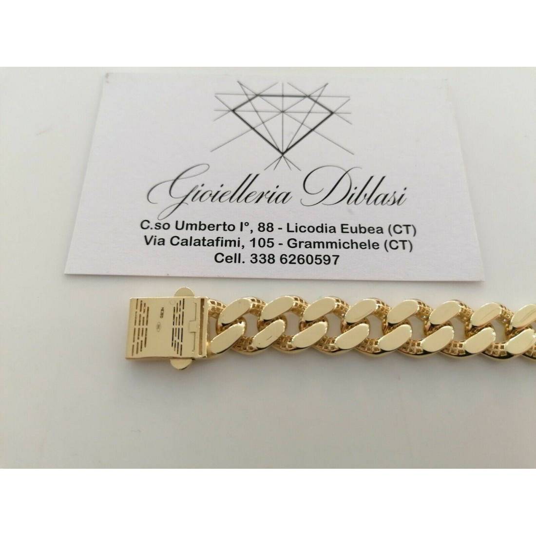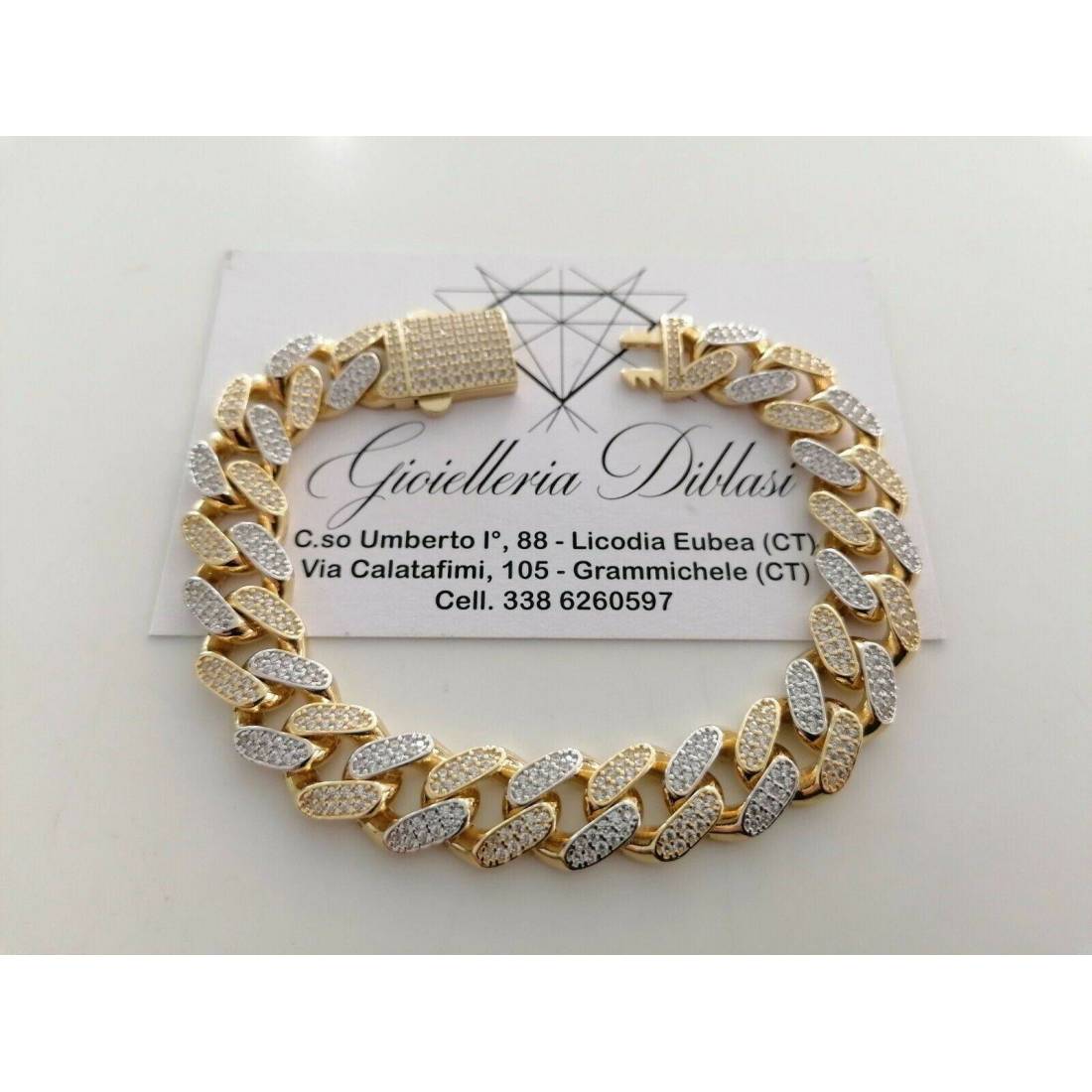 BRACCIALE ORO 18Kt 750% Uomo Donna GIALLO BIANCO Catena GRUMETTA Zaffiri Bianchi