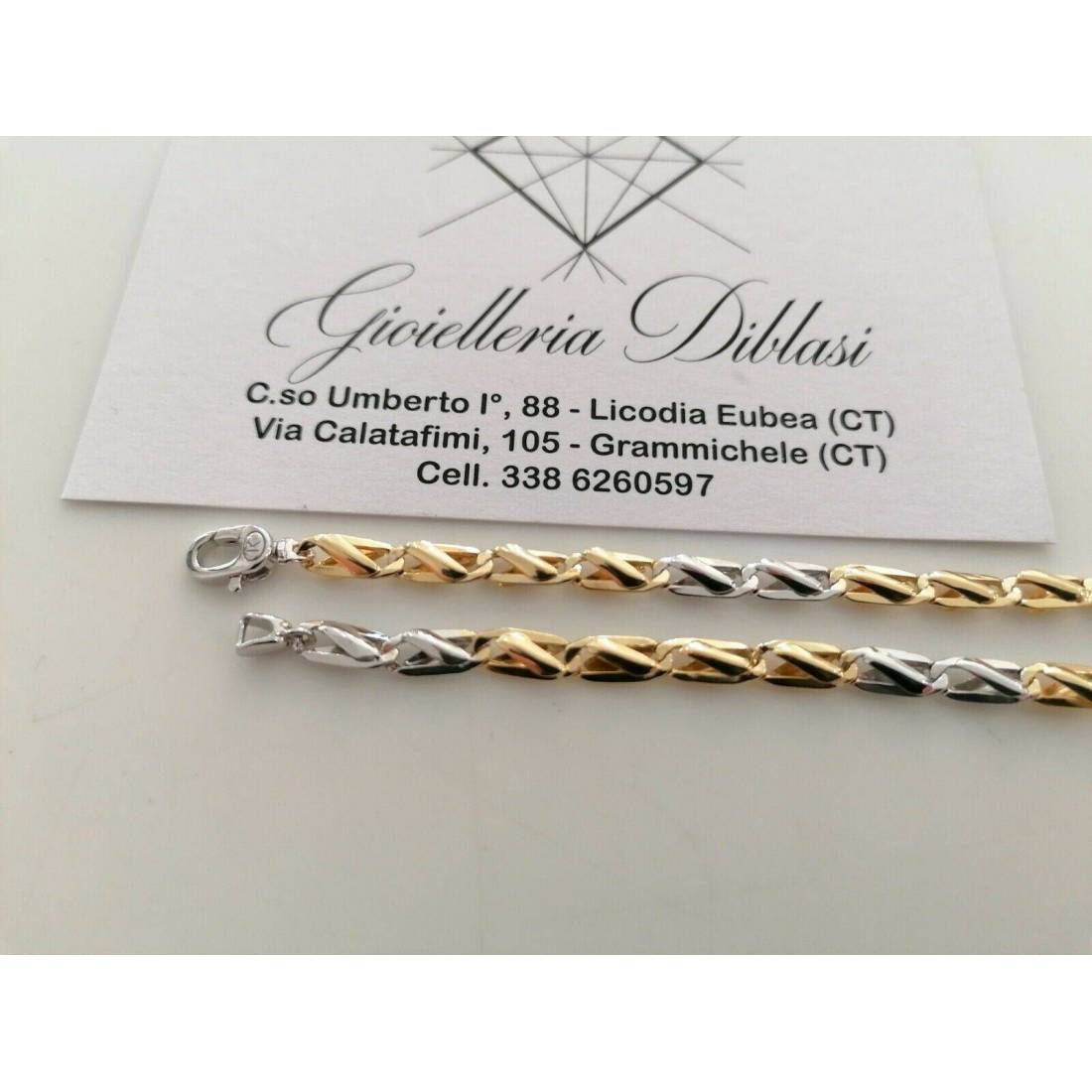 BRACCIALE In ORO 18 Karati 750% Uomo Donna Unisex Maglia Bicolore GIALLO BIANCO