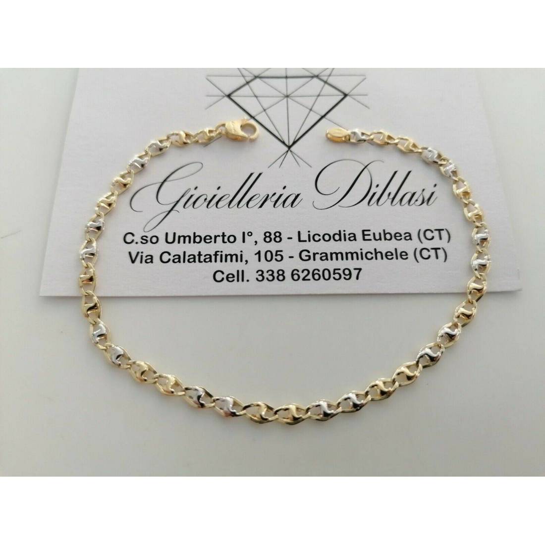 BRACCIALE Uomo Donna Unisex 18 Karati 750% In ORO GIALLO BIANCO Maglia Bicolore