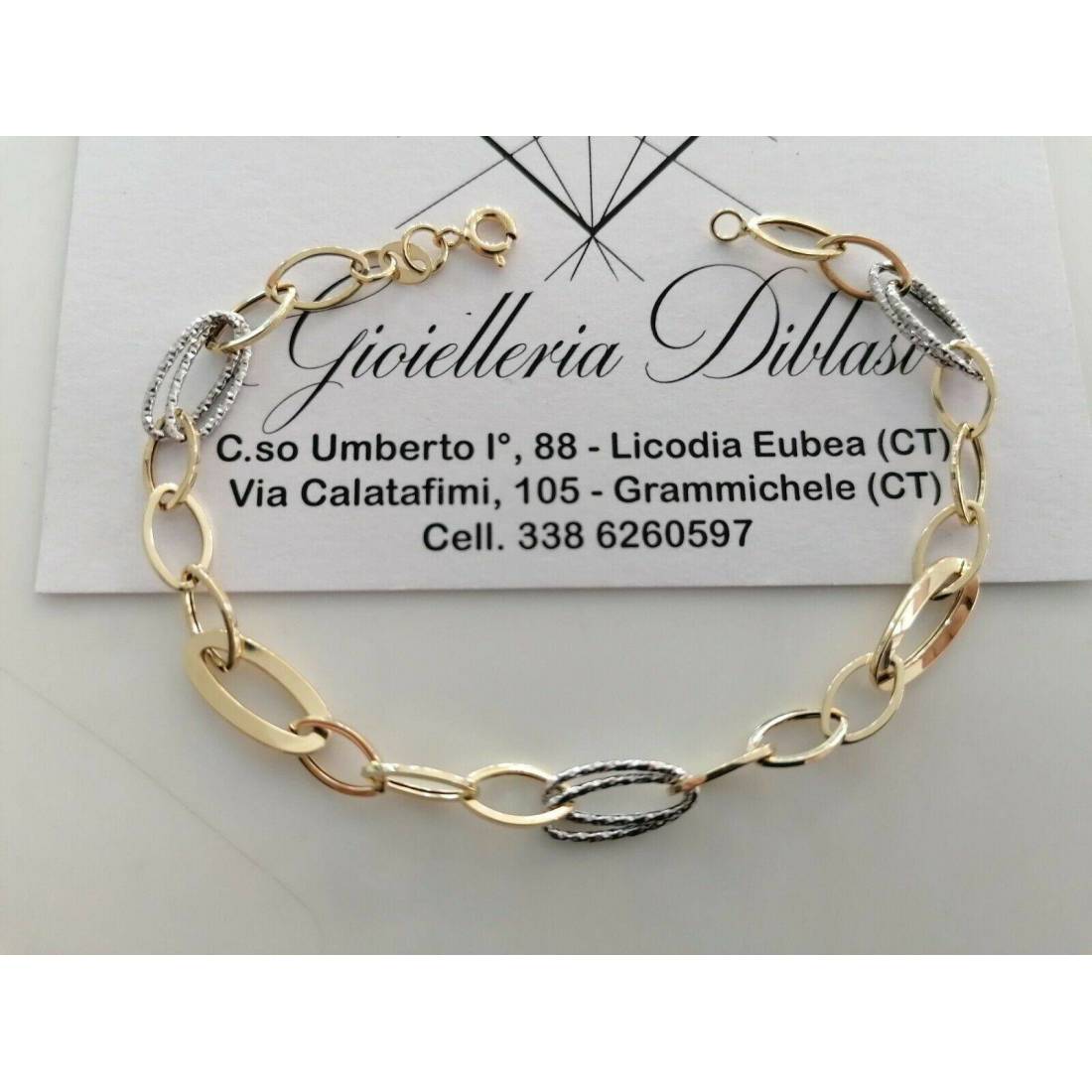 BRACCIALE ORO 18 Kt 750% Donna Bicolore GIALLO BIANCO Maglia A Catena Con Ovali