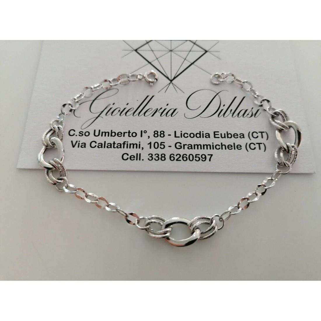 BRACCIALE ORO BIANCO Donna 18 Karati 750% Maglia Lucida CATENA Larga Con Ovali