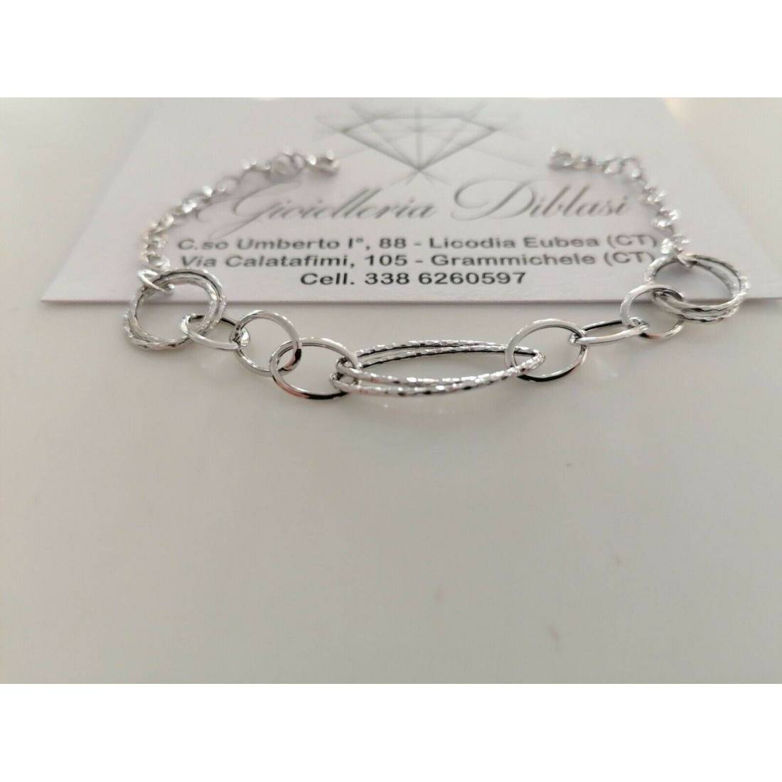 BRACCIALE ORO BIANCO Donna 18 Karati 750% Maglia Lucida CATENA Larga Con Ovali