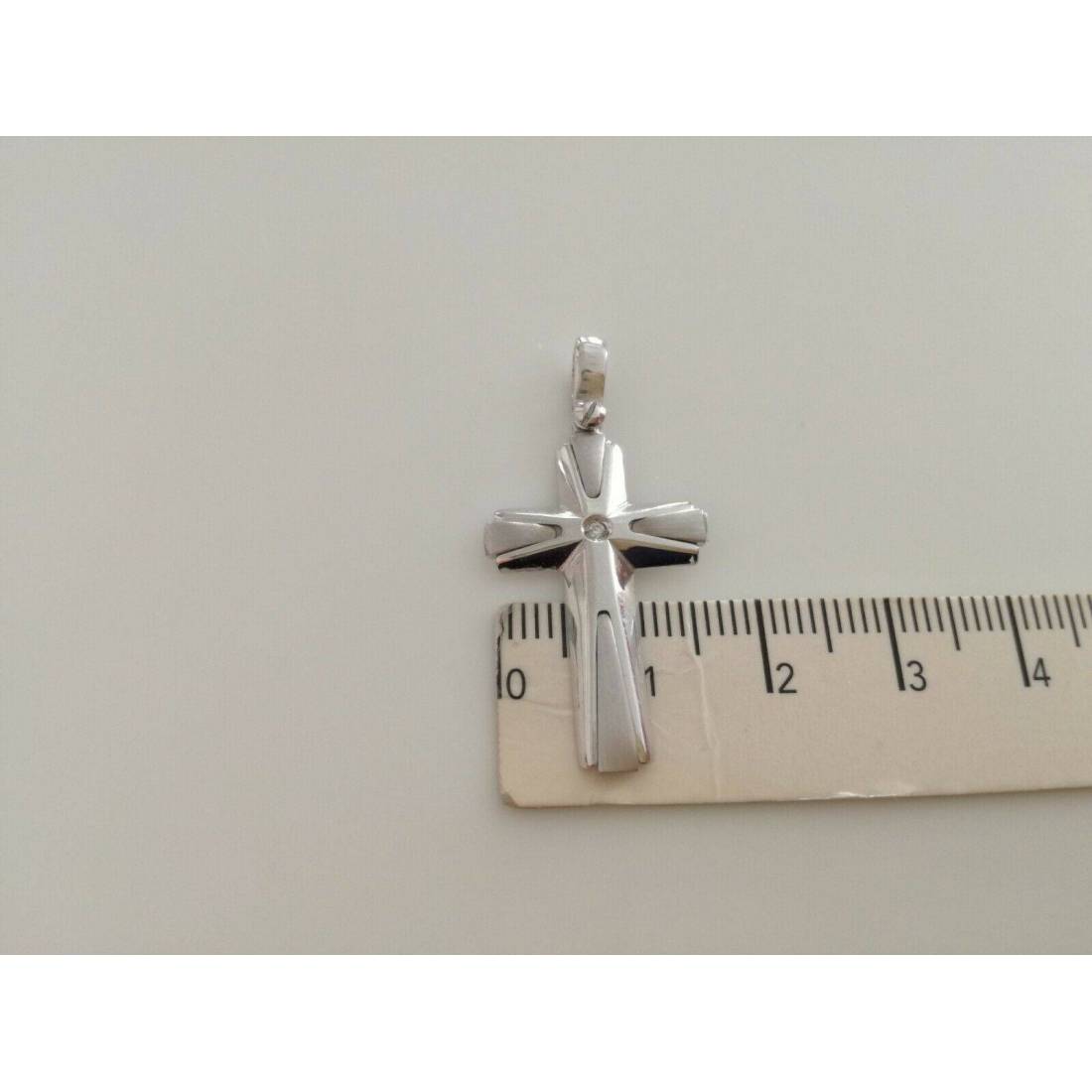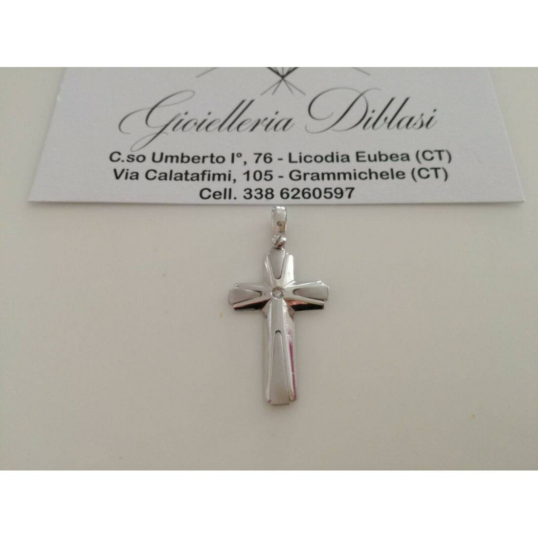 CIONDOLO CROCE Oro 18 Karati 750% Oro Bianco e Diamante Pendente Made in Italia