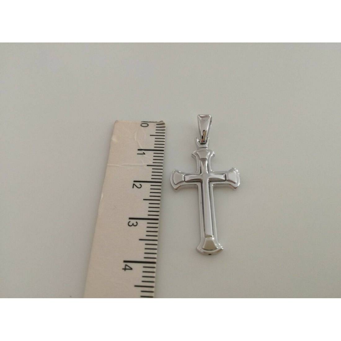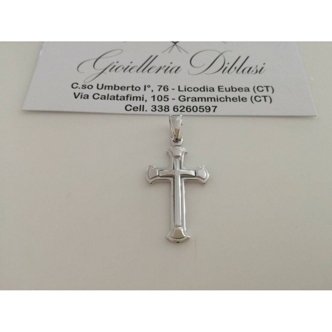 CIONDOLO CROCE Pendente Oro 18 Kt 750% Oro Bianco Uomo Donna Unisex Made Italy