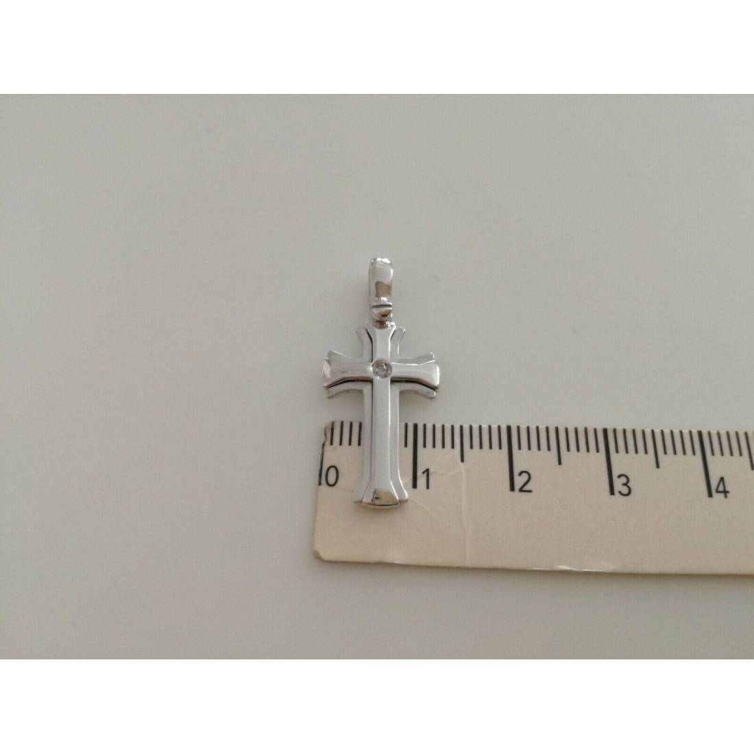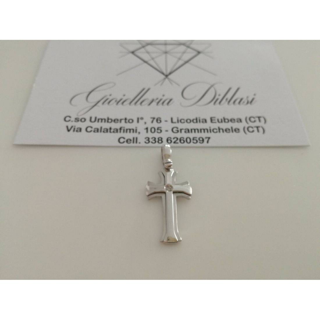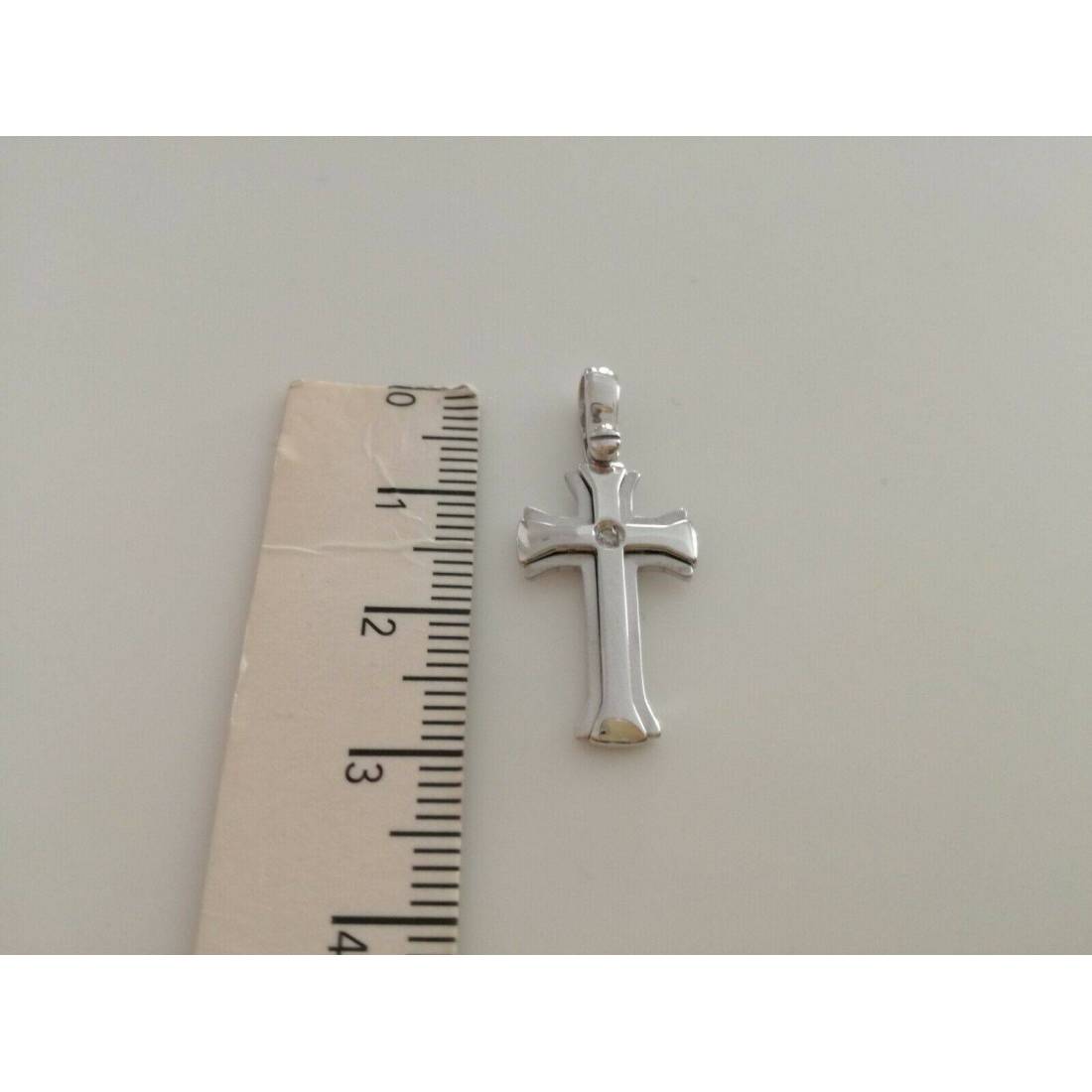 CIONDOLO CROCE Oro 18 Kt 750% Oro Bianco e Diamante CROCEFISSO Pendente Italy
