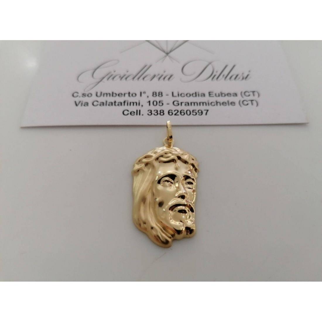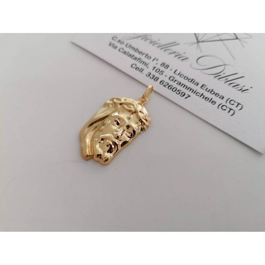 CIONDOLO Pendente MEDAGLIA VOLTO DI GESU' CRISTO ORO GIALLO 18 KARATI 750%/1000