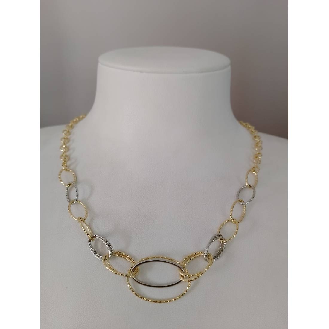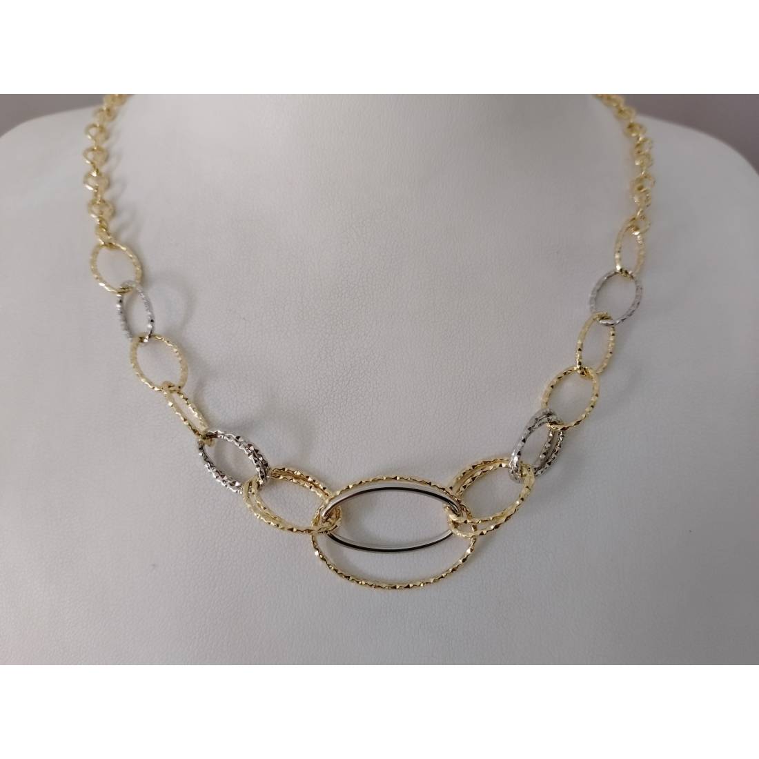 COLLANA ORO 18 KT 750% Bicolore GIALLO BIANCO Donna COLLIER CATENA Maglia Ovali