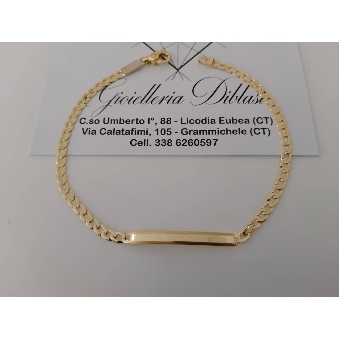 BRACCIALE Uomo Donna ORO GIALLO 18 Karati 750% Grumetta Con Targhetta Piastrina