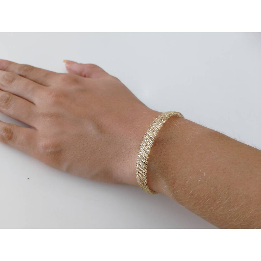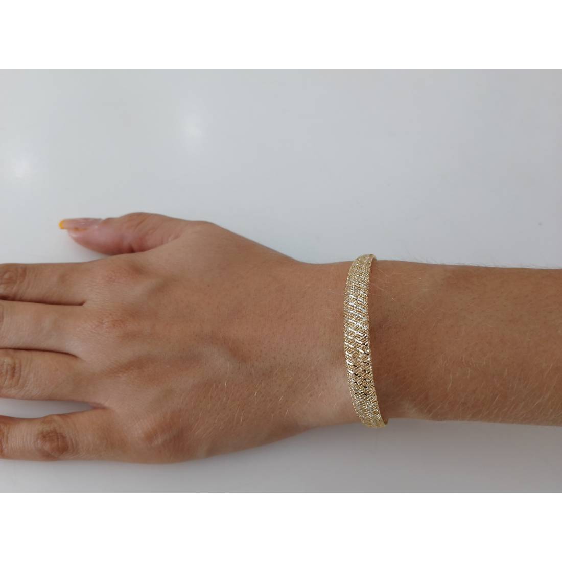 BRACCIALE Donna ORO GIALLO E BIANCO 18 Karati 750%/1000 Maglia ELASTICA Bicolore