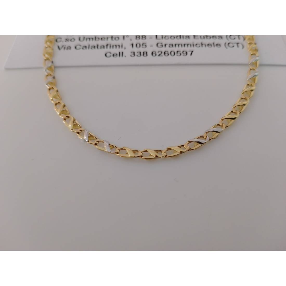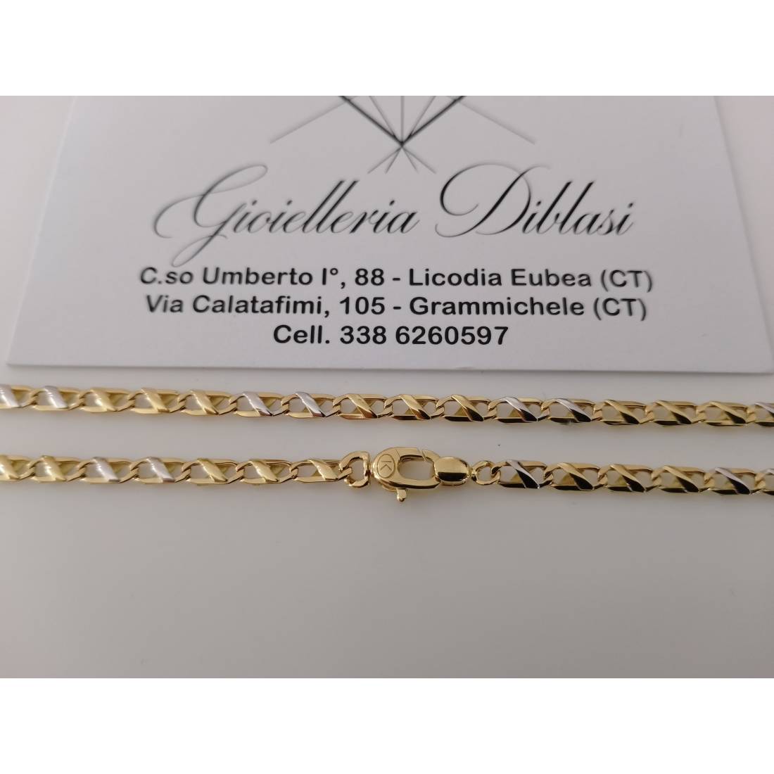COLLANA Collier CATENA Girocollo ORO 18 KT 750% GIALLO BIANCO Maglia Uomo Donna
