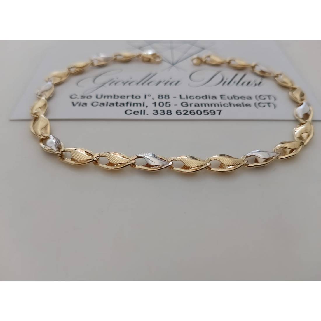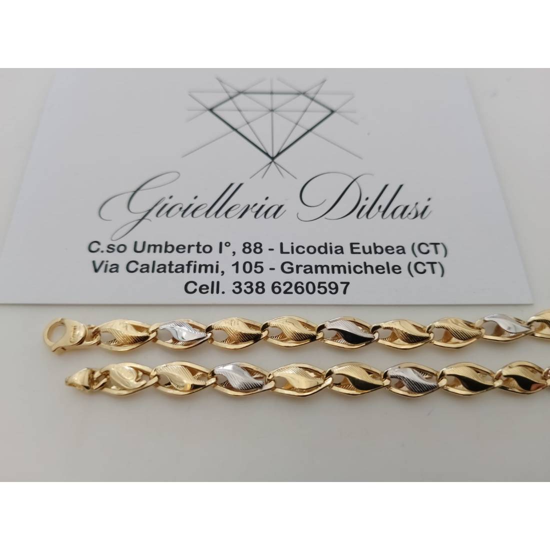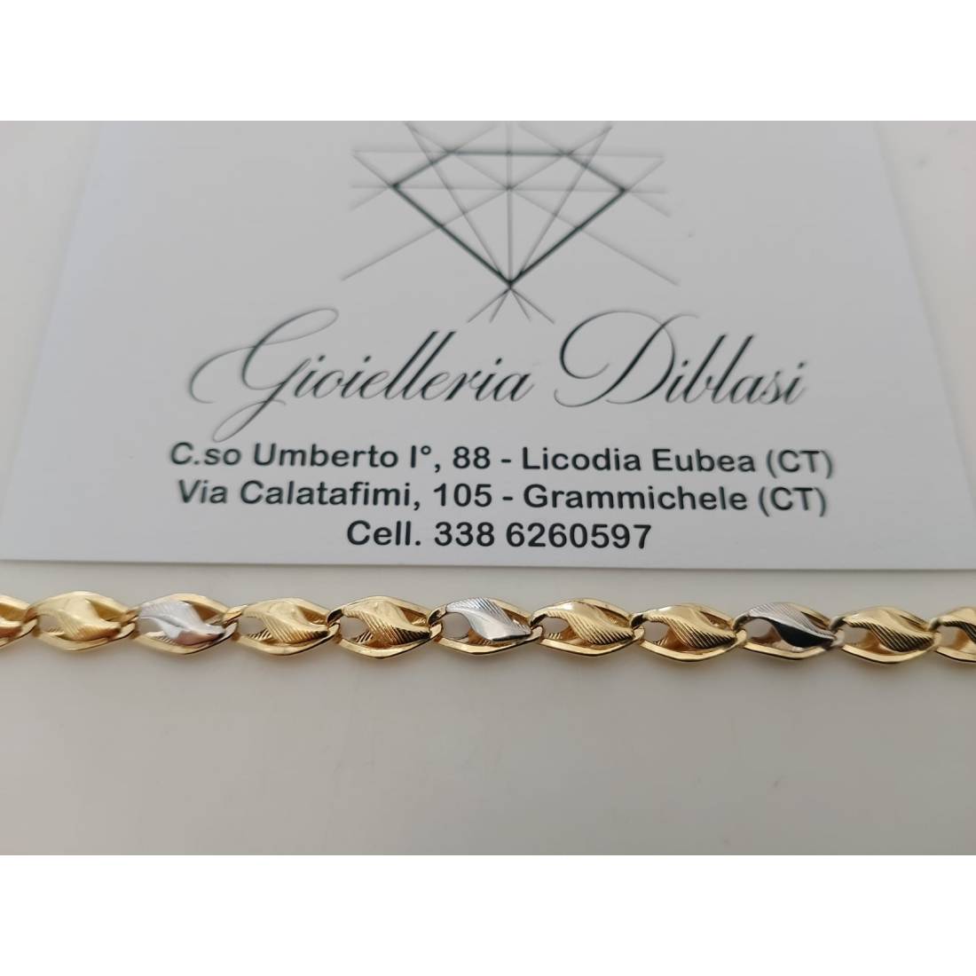 BRACCIALE Uomo Donna In Oro 18 Karati 750% GIALLO BIANCO Bicolore Maglia Lucida