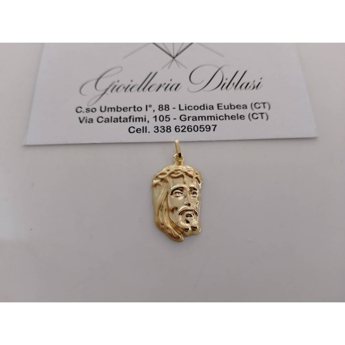 CIONDOLO Pendente MEDAGLIA VOLTO DI GESU' CRISTO ORO GIALLO 18 KARATI 750%/1000
