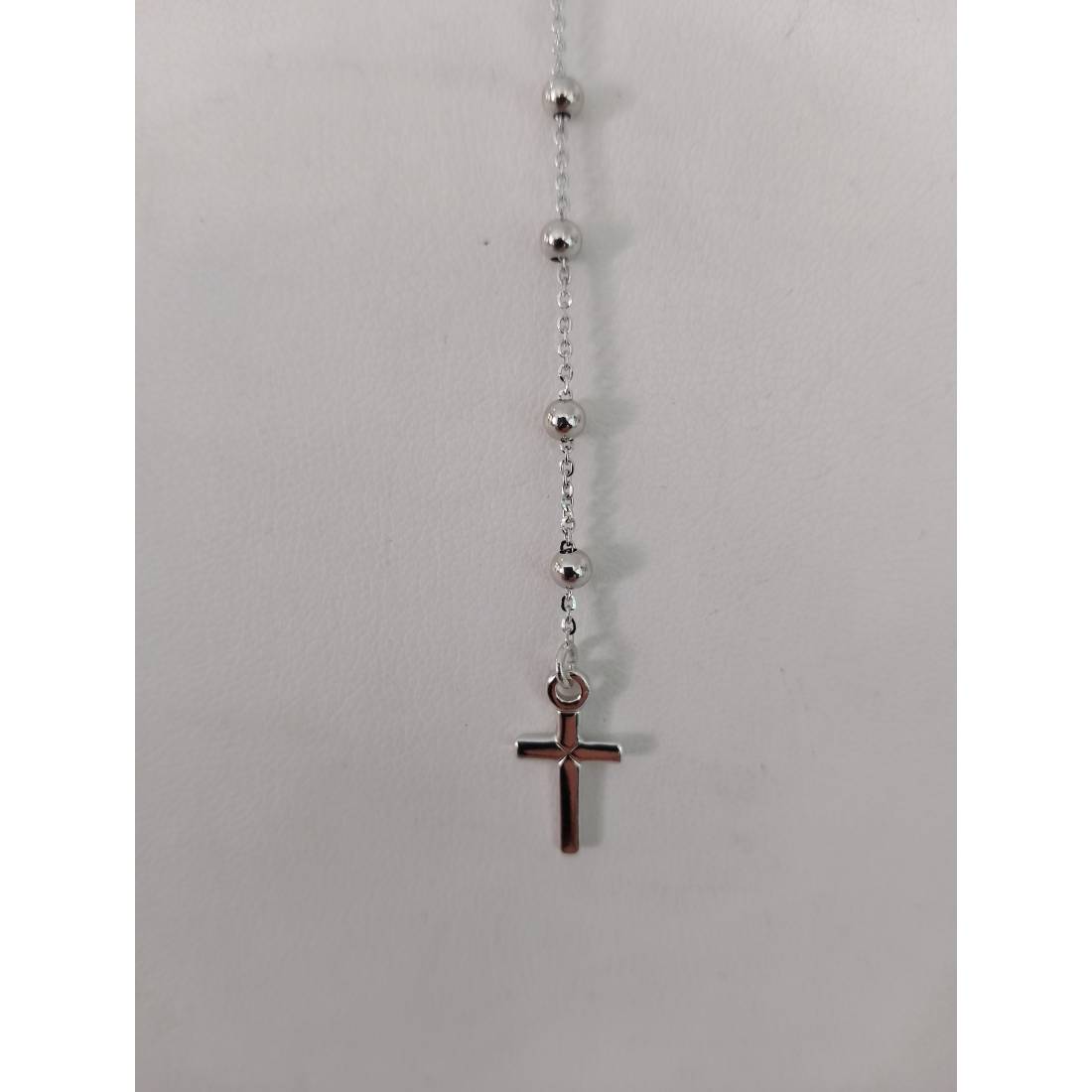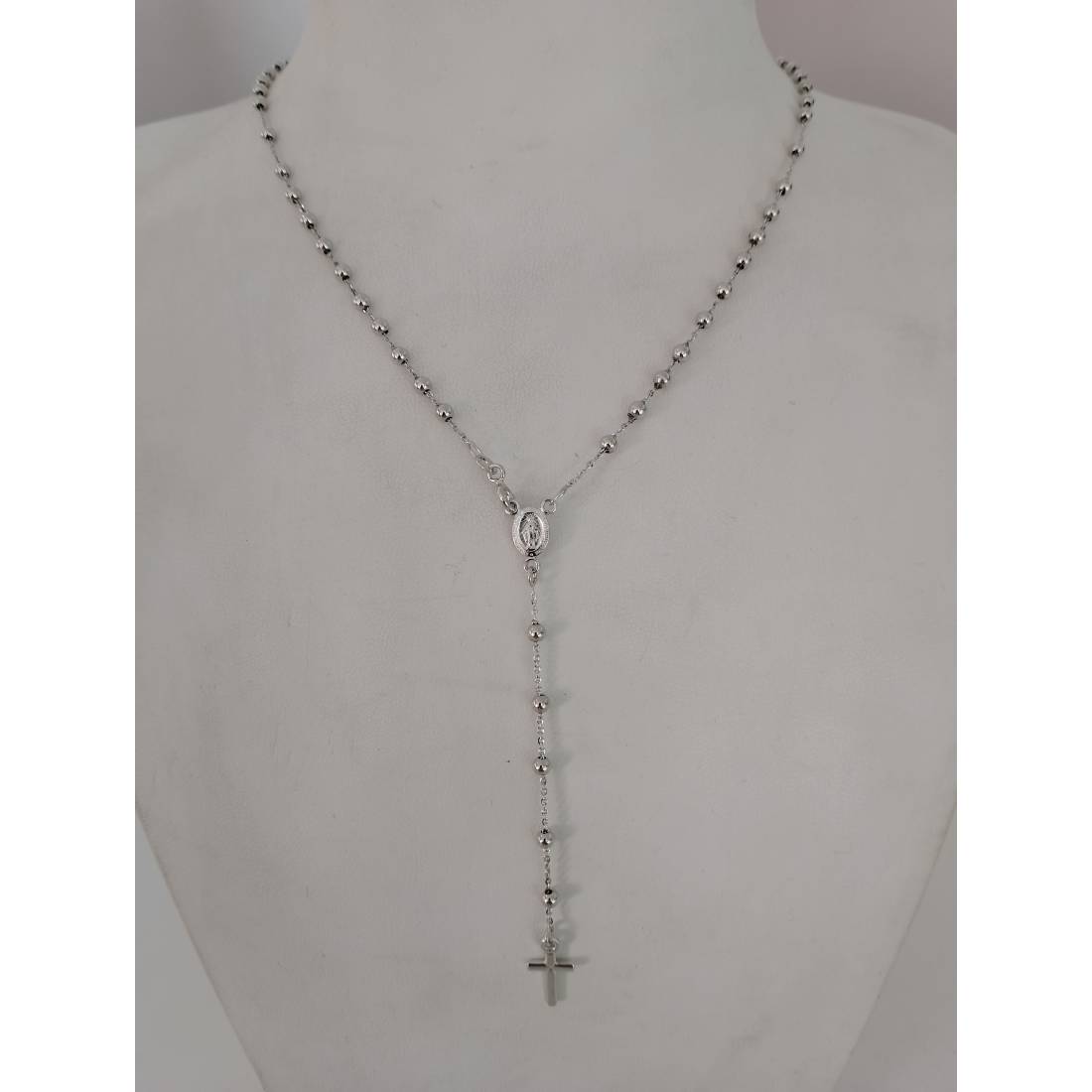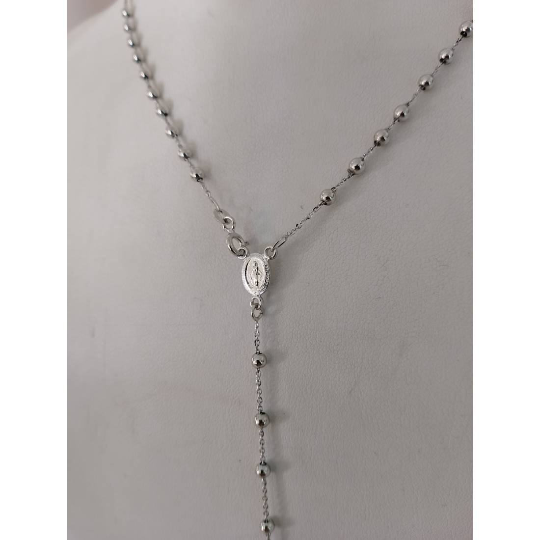 COLLANA ROSARIO ORO BIANCO 750 18K UNISEX MEDAGLIA MIRACOLOSA CROCE SFERE LUCIDE