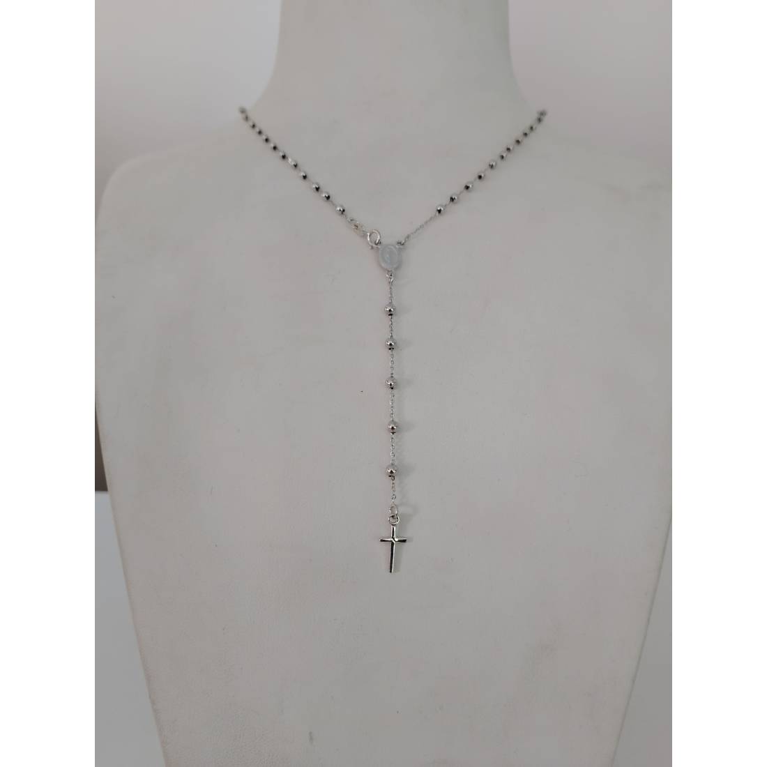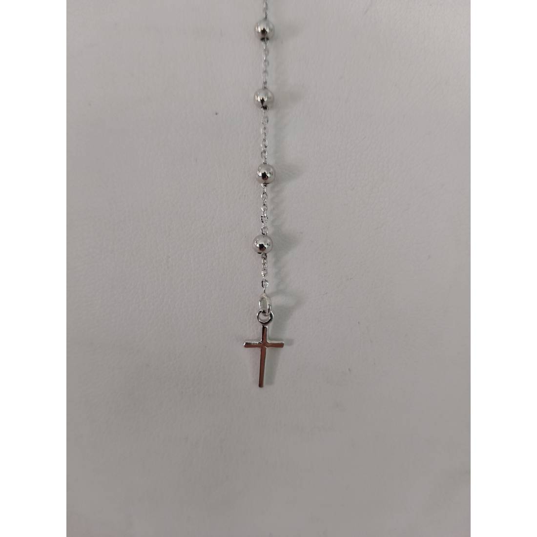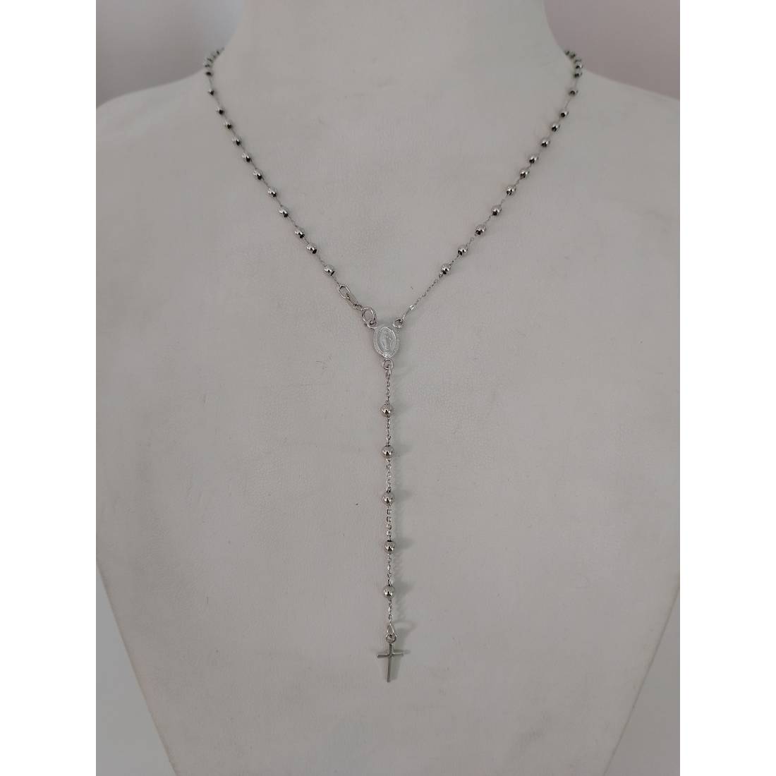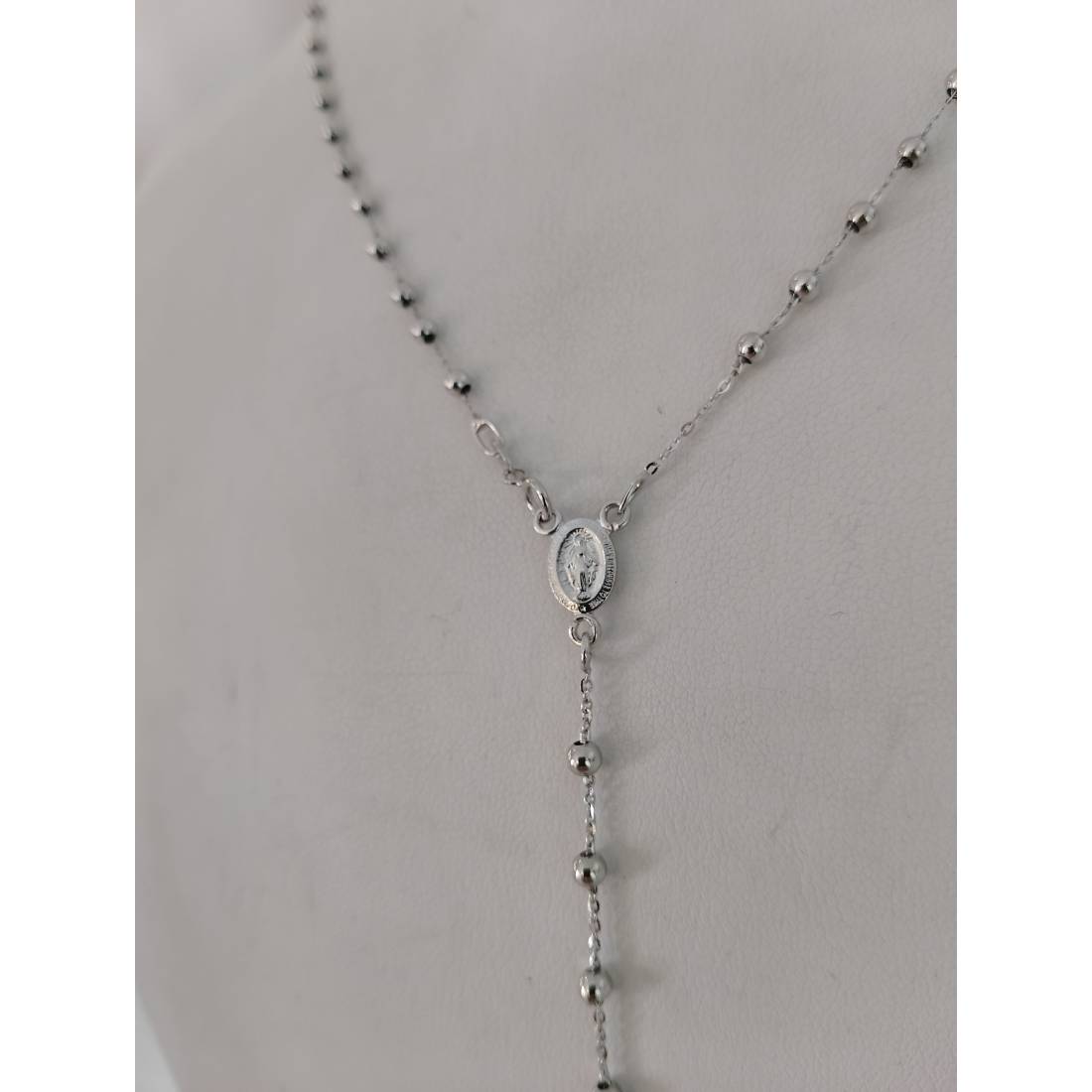 COLLANA ROSARIO ORO BIANCO 750 18K UNISEX MEDAGLIA MIRACOLOSA CROCE SFERE LUCIDE
